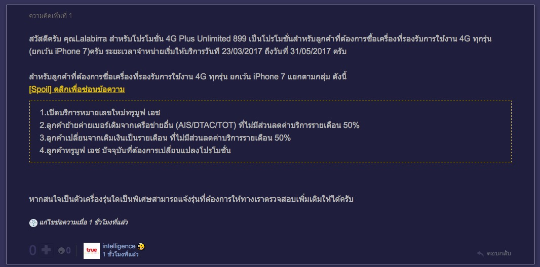 อัปเดต 3 ประกาศ Official จาก TrueMove H (25/3/2560)