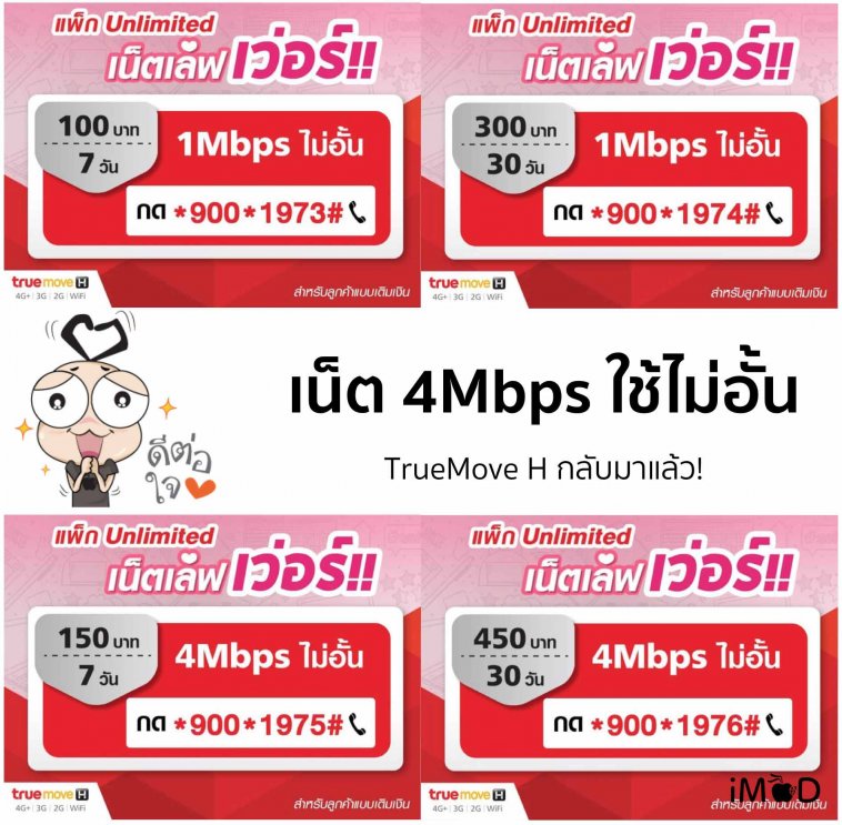 เล่นเน็ตไม่อั้นทรู ไม่ลดสปีด เร็วสุด 4Mbps สมัครได้แล้ว อัปเดต 22 มีนาฯ 60