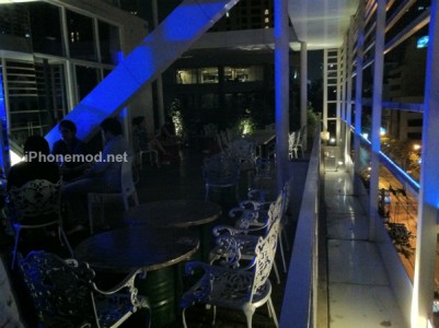 วิว Outdoor บริเวณหน้าระเบียง ซึ่งตรงนี้ขอวิจารณ์หน่อยว่าค่อนข้างร้อนไปนิด แต่ทางร้านได้แก้ไขปัญหาโดยมีพัดลมแรง ๆ ให้ และอีกอย่างคือตึกบังทิศทางไปเสียเยอะ ซึ่งผมไม่ค่อยชอบเลย 🙁