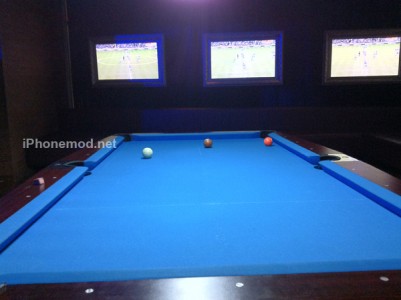 อันนี้เป็นโต๊ะสนุ๊กหรือพลูไม่ทราบครับ (รอผู้รู้มาอธิบาย) ซึ่งผมก็เล่นไม่เป็นอยู่เหมือนกัน มีโทรทัศน์อยู่รอบโต๊ะครับ ใครติดบอลอยู่รับรองว่าไม่พลาดแน่นอน