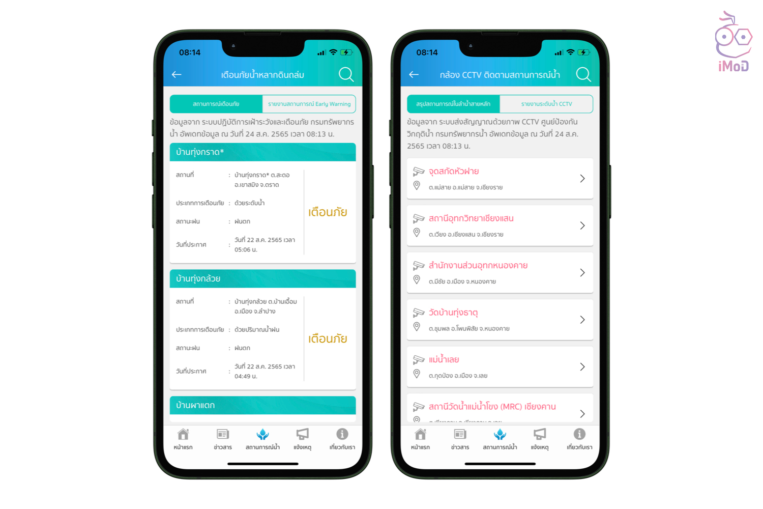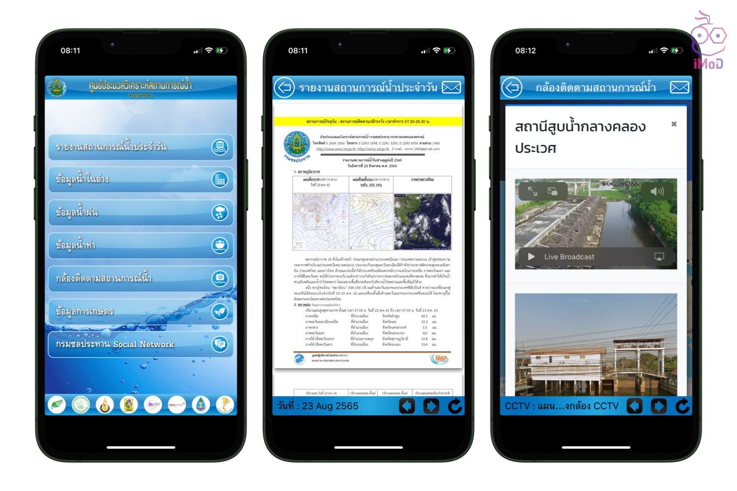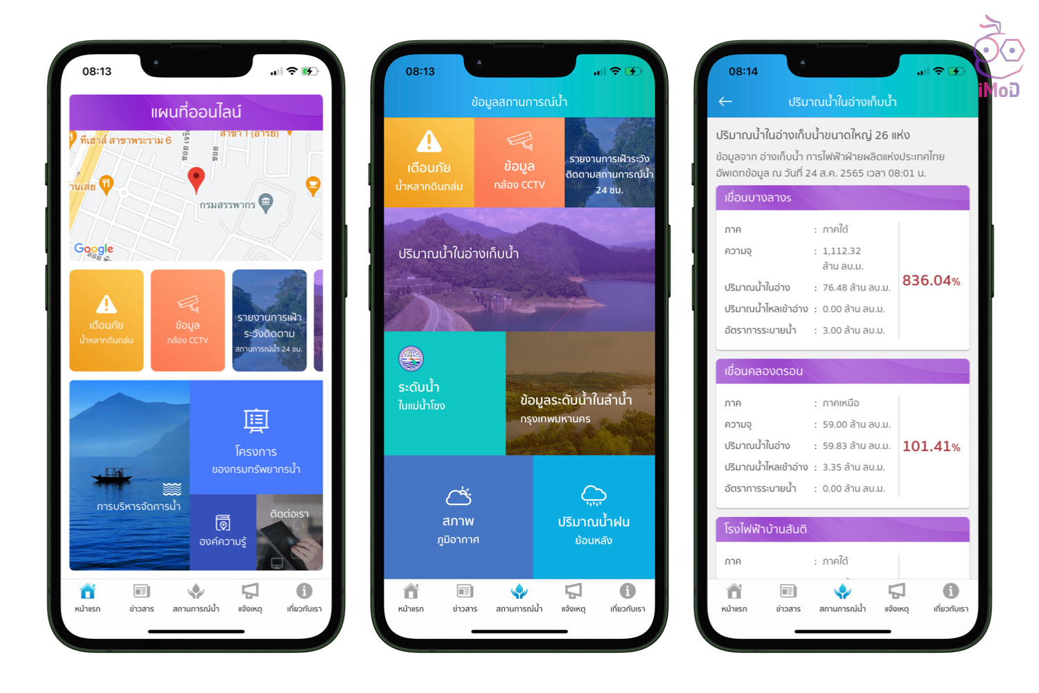 แอปให้บริการข้อมูลเกี่ยวกับสถานการณ์น้ำ ไม่ว่าจะเป็นการเตือนภัยน้ำหลาก ดินถล่ม ปริมาณน้ำในอ่างเก็บน้ำขนาดใหญ่แต่ละแห่งว่ามีระดับน้ำแค่ไหน อัตราการระบายน้ำอยู่ที่เท่าไหร่ เพื่อให้ประชาชนได้ติดตามอยู่ตลอดเวลา