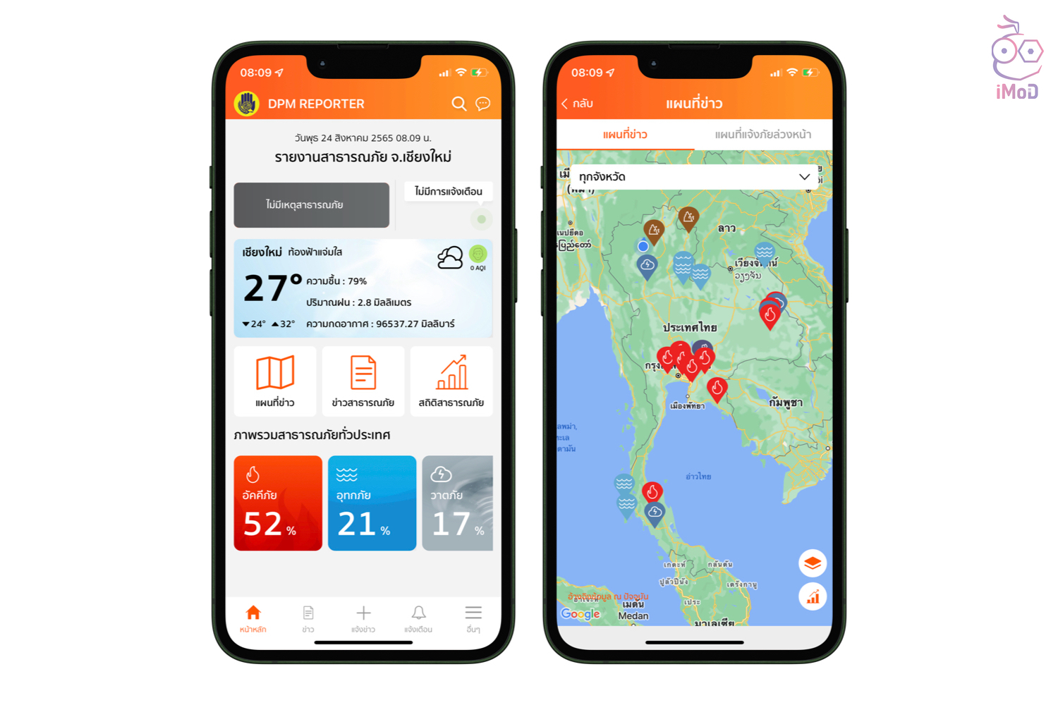 แอปใช้สำหรับเจ้าหน้าที่กรมป้องกันและบบรเทาสาธารณภัย ซึ่งเราสามารถดาวน์โหลดมาติดตามข่าวต่าง ๆ ได้ ไม่ว่าจะเป็นอุกทุกภัย อัคคีภัย ดินถล่ม ก็สามารถรรับชมได้ แอปจะมีแผนที่ข่าวที่ระบุว่าจุดไหนมีเหตุการณ์อะไรเกิดขึ้นบ้าง