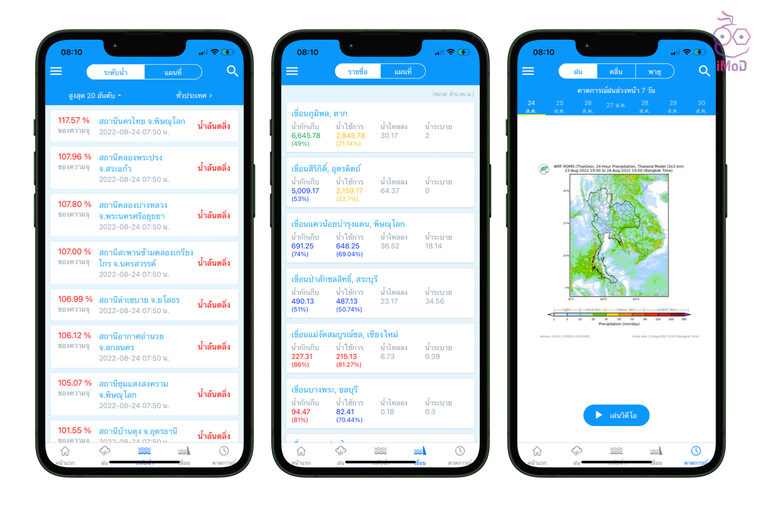 แอปติดตามสถานการณ์น้ำประเทศไทย จากคลังข้อมูลน้ำแห่งชาติ ที่แสดงภาพรวมของสถานการณ์น้ำและ พายุ ปริมาณฝนในแต่ละพื้นที่ทั่วประเทศไทย