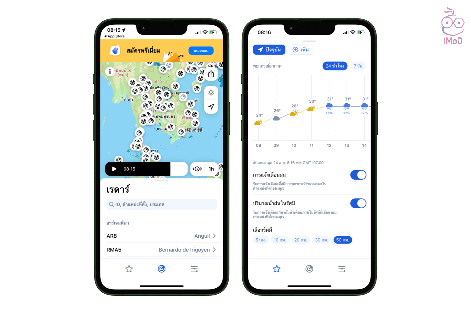 แอปเรดาร์ที่ตรวจอากาศ ติดตามพายุ และปริมาณน้ำฝน แสดงข้อมูลแบบเรียลไทม์ มีส่วนของการพยากรณ์ฝนที่จะเกิดขึ้นล่วงหน้า พร้อมกับมีฟังก์ชันการแจ้งเตือนฝนตกให้ทราบอีกด้วย เพื่อให้ผู้ใช้เตรียมตัวก่อนออกเดินทาง