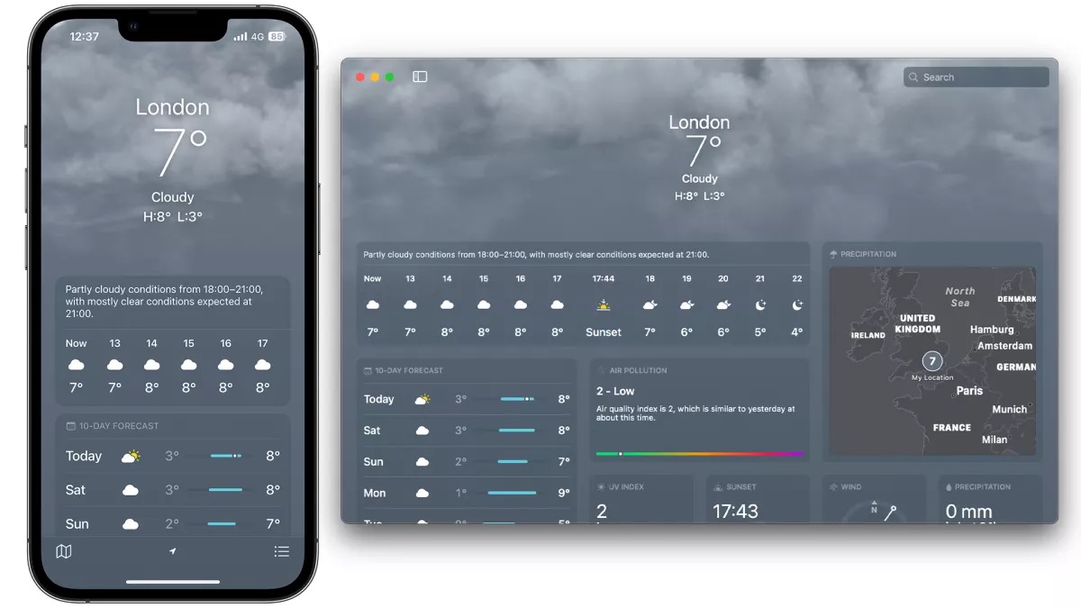 แอปสภาพอากาศ (Weather) ได้รับการปรับปรุงอย่างต่อเนื่องใน iOS, iPadOS และ macOS เราคงจะได้ใช้งานหน้าจอล็อค iPhone ที่แสดงสภาพอากาศเป็นภาพเคลื่อนไหวของท้องฟ้าตามรายงานสภาพอากาศแบบเรียลไทม์