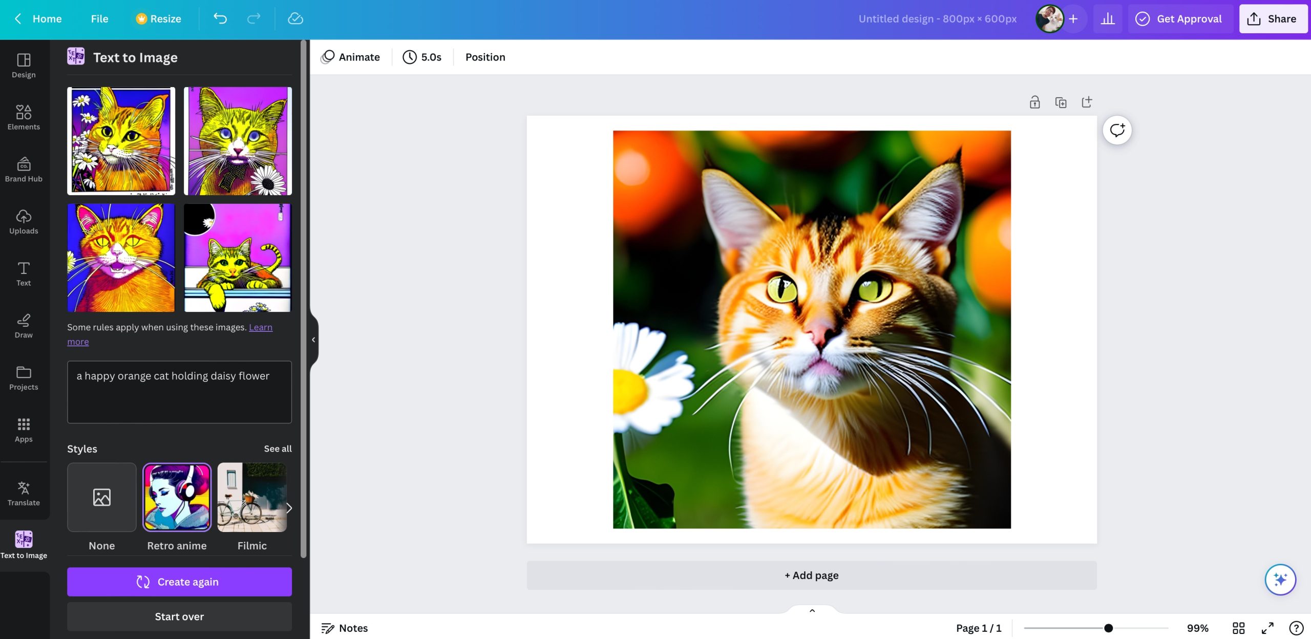 ฟีเจอร์ Text to image บนเว็บไซต์ Canva เป็นหนึ่งในฟีเจอร์ที่ Canva นำ AI เข้ามารวมในการใช้งานเว็บไซต์ของตัวเอง ซึ่งเราสามารถใช้งานสร้างรูปด้วย AI ได้ฟรี มีตัวเลือก Stlye ให้เลือกเยอะ