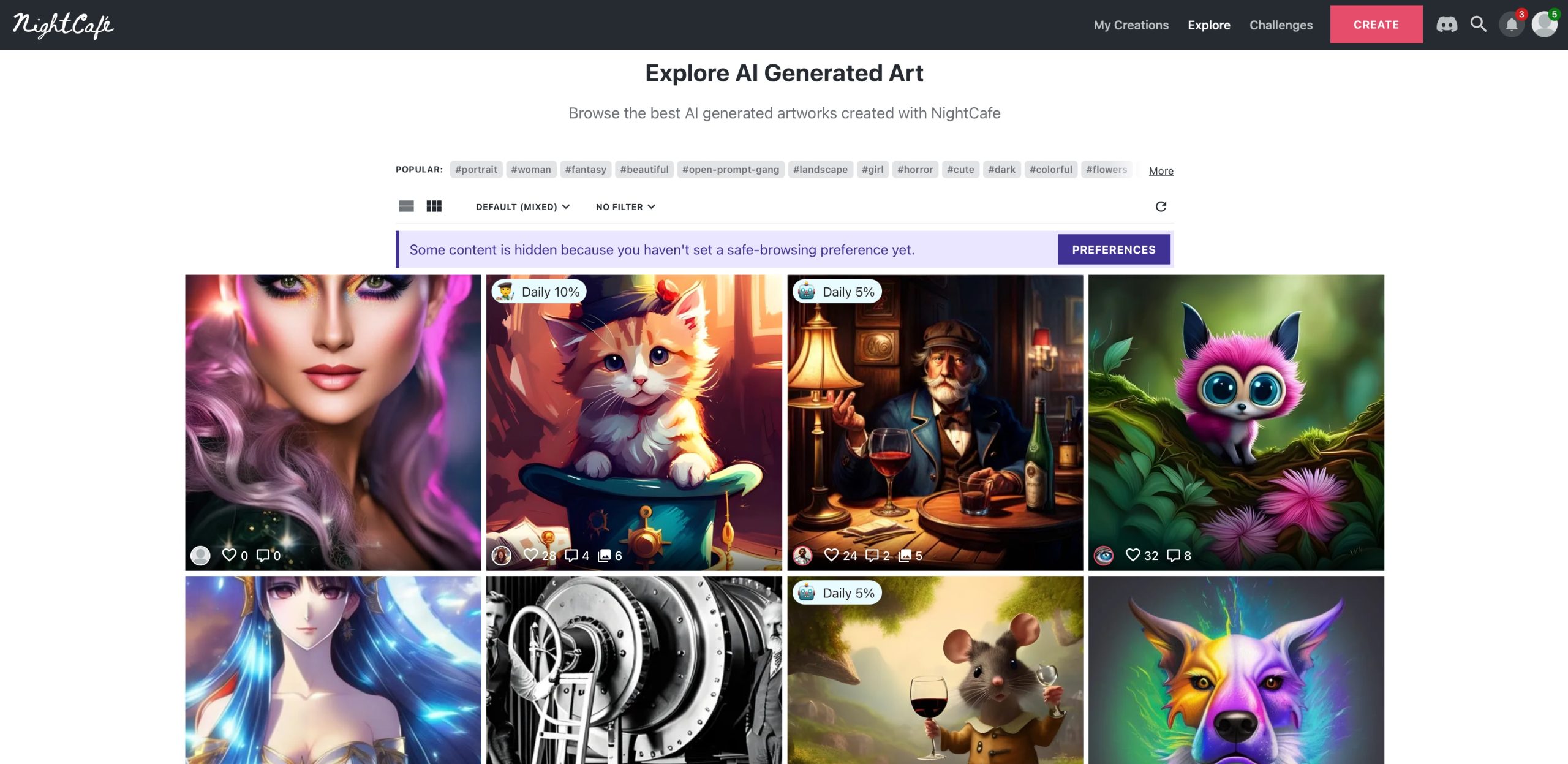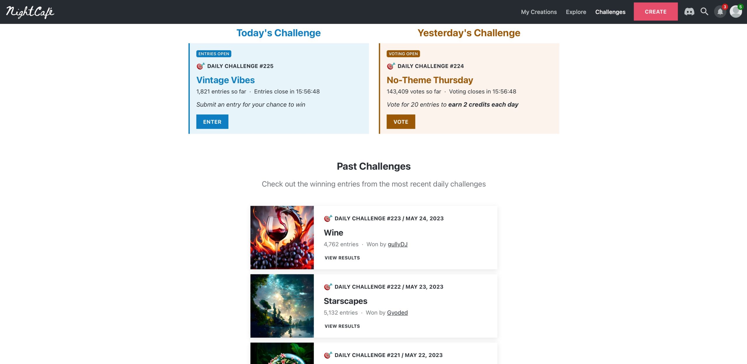 หนึ่งในเว็บไซต์สร้างรูปด้วย AI ที่น่าสนใจ เพราะนอกเหนือจากการสร้างรูปปกติแล้ว บนเว็บไซต์ยังมี Challenge ให้เราส่งรูปประกวดกับคนอื่น ๆ ซึ่งหัวข้อนั้นจะเปลี่ยนไปในแต่ละวัน
