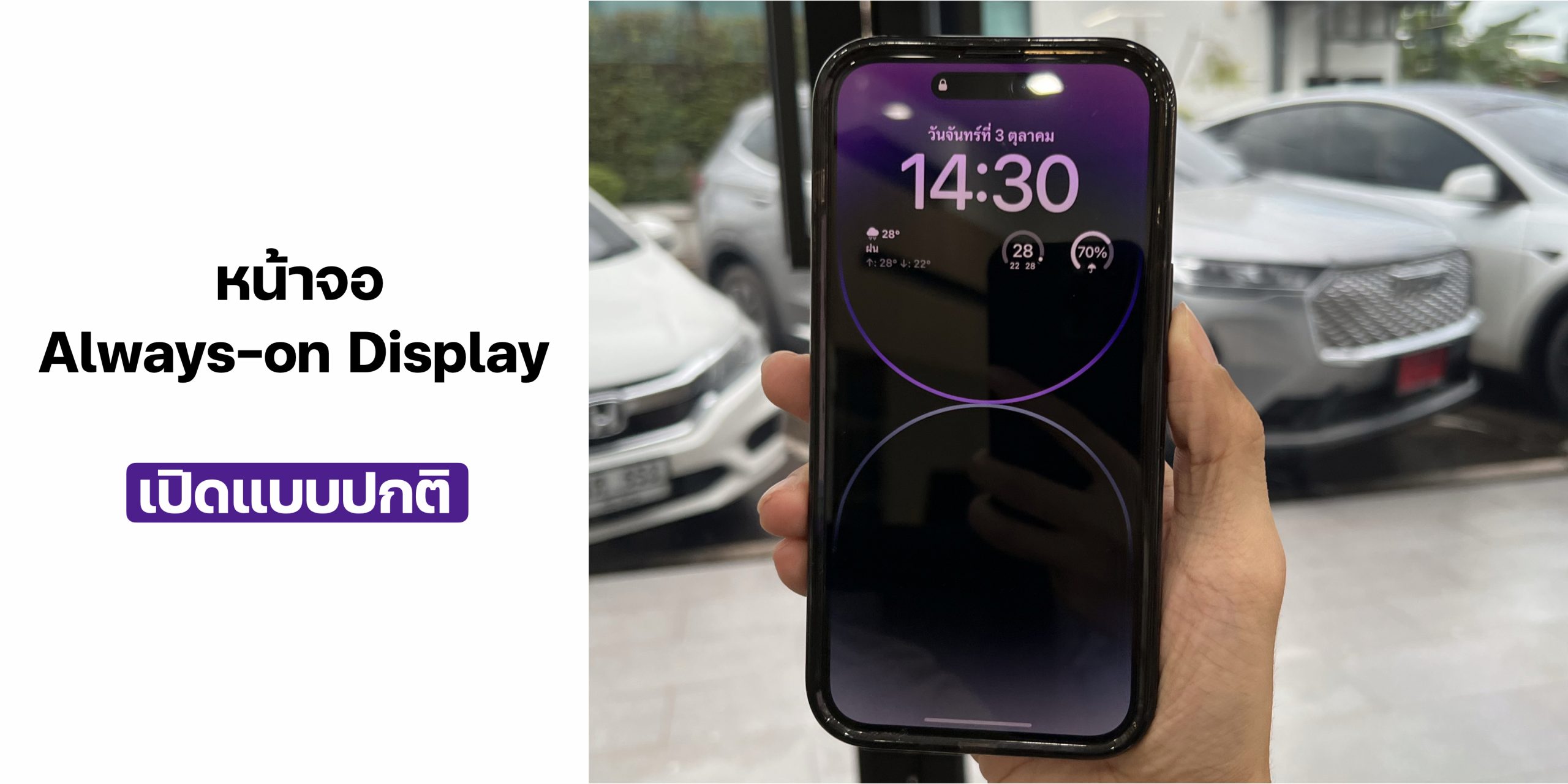 iPhone 14 รุ่น Pro มีฟีเจอร์ใหม่เข้ามานั่นก็คือฟีเจอร์ Always-on Display ลักษณะการทำงานเป็นแบบเดียวกันกับหน้าจอของ Apple Watch โดยเมื่อเราล็อคหน้าจอแล้วพื้นหลังจะทำการลดแสงลง แต่ยังคงแสดงสีสันตามพื้นหลังที่เราใช้อยู่
