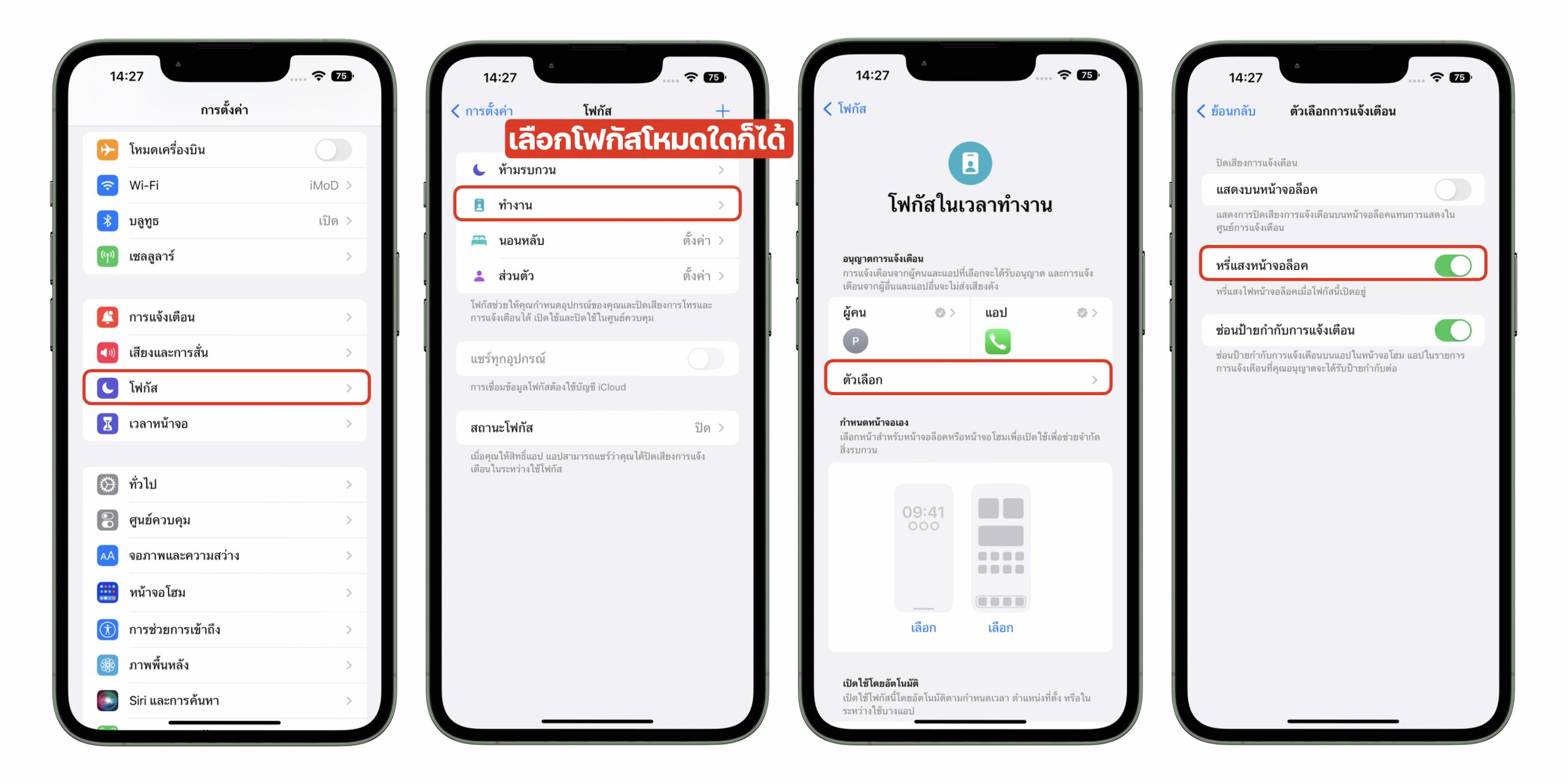 ให้เราเข้าไปที่ การตั้งค่า > เลือกโฟกัส > จากนั้นแตะคำว่า “ตัวเลือก” เลือก หรี่แสงหน้าจอล็อค