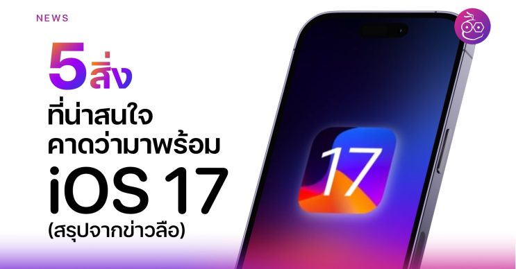 อีกประมาณเดือนครึ่งก็จะเข้าสู่งาน WWDC23 ที่จะจัดขึ้นในวันที่ 6 มิถุนายน 2023 กันแล้ว ทีมงานก็มีข้อมูลเกี่ยวกับ iOS 17 ที่รวบรวมจากข่าวลือที่ผ่านมา มาสรุปแนะนำให้ชมกันว่าจะมีสิ่งใหม่อะไรที่น่าสนใจบ้าง
