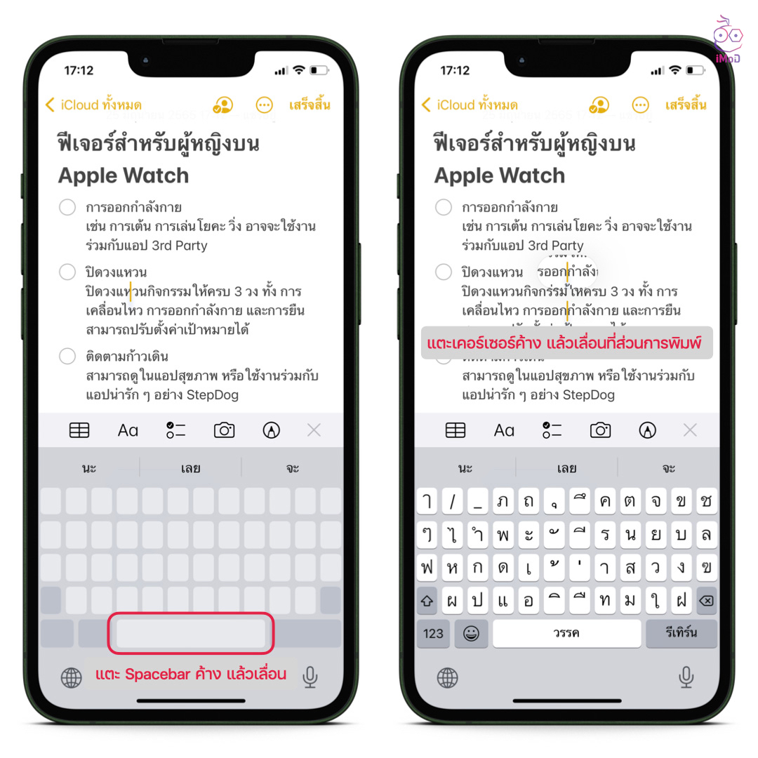 ระหว่างที่เราพิมพ์โน้ตหรือพิมพ์ข้อความอยู่ แล้วต้องการจะกลับไปแก้ไขข้อความที่พิมพ์ไปแล้ว การแตะหน้าจอเพื่อไปยังตำแหน่งคำที่ผิดอาจจะแตะไม่ตรงจุด สร้างความหงุดหงุดใจให้ใครหลายคนได้