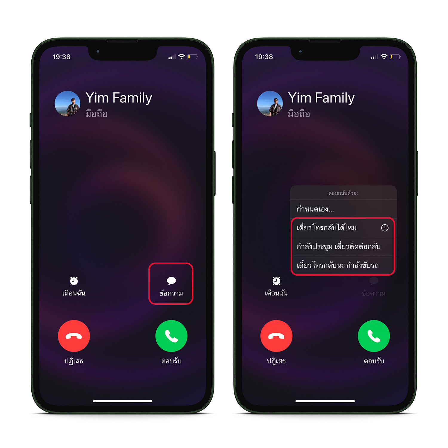 เมื่อมีนโทรเข้ามาในระหว่างที่เราไม่ว่าง เราก็สามารถแตข้อความ แล้วส่งข้อความตอบกลับที่ตั้งค่าไว้ได้เลย