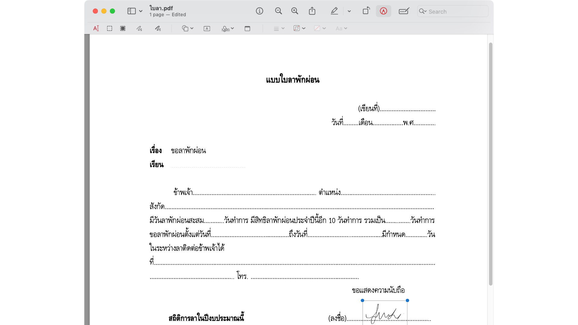 แอปพลิเคชันที่ติดมากับ macOS ซึ่งมีอยู่ใน Mac ทุกเครื่อง สามารถใช้ดูและแก้ไข PDF เบื้องต้นได้