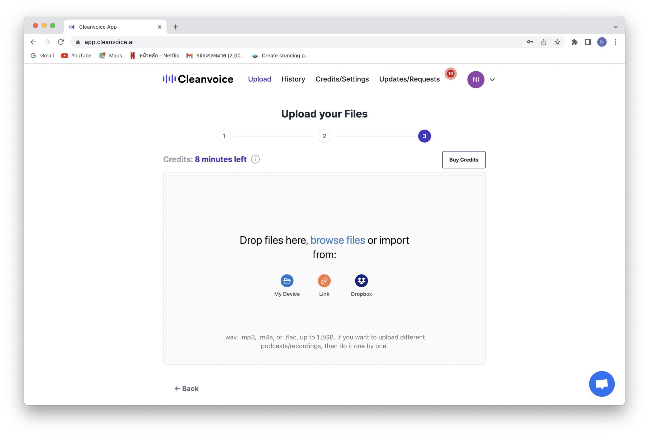 สิ่งที่เราต้องทำคือการอัปโหลดไฟล์เสียงลงไป โดยต้องเป็นไฟล์ประเภท .wav, .mp3, m4a, .flac