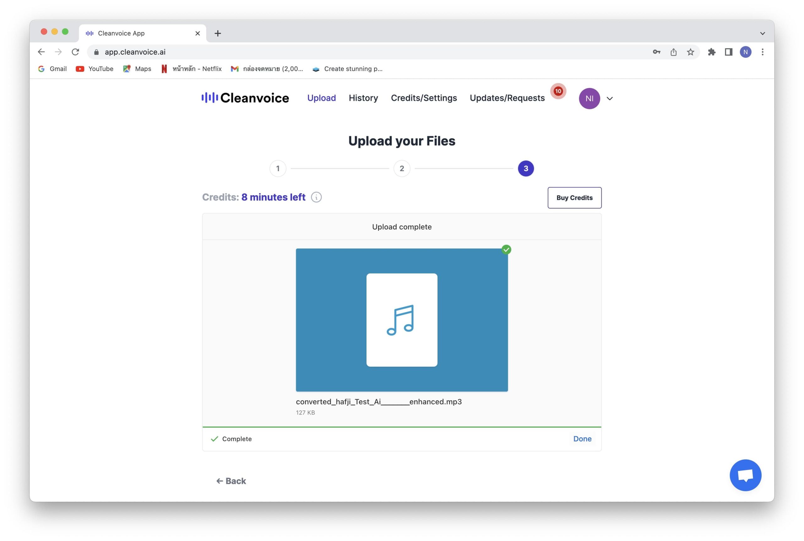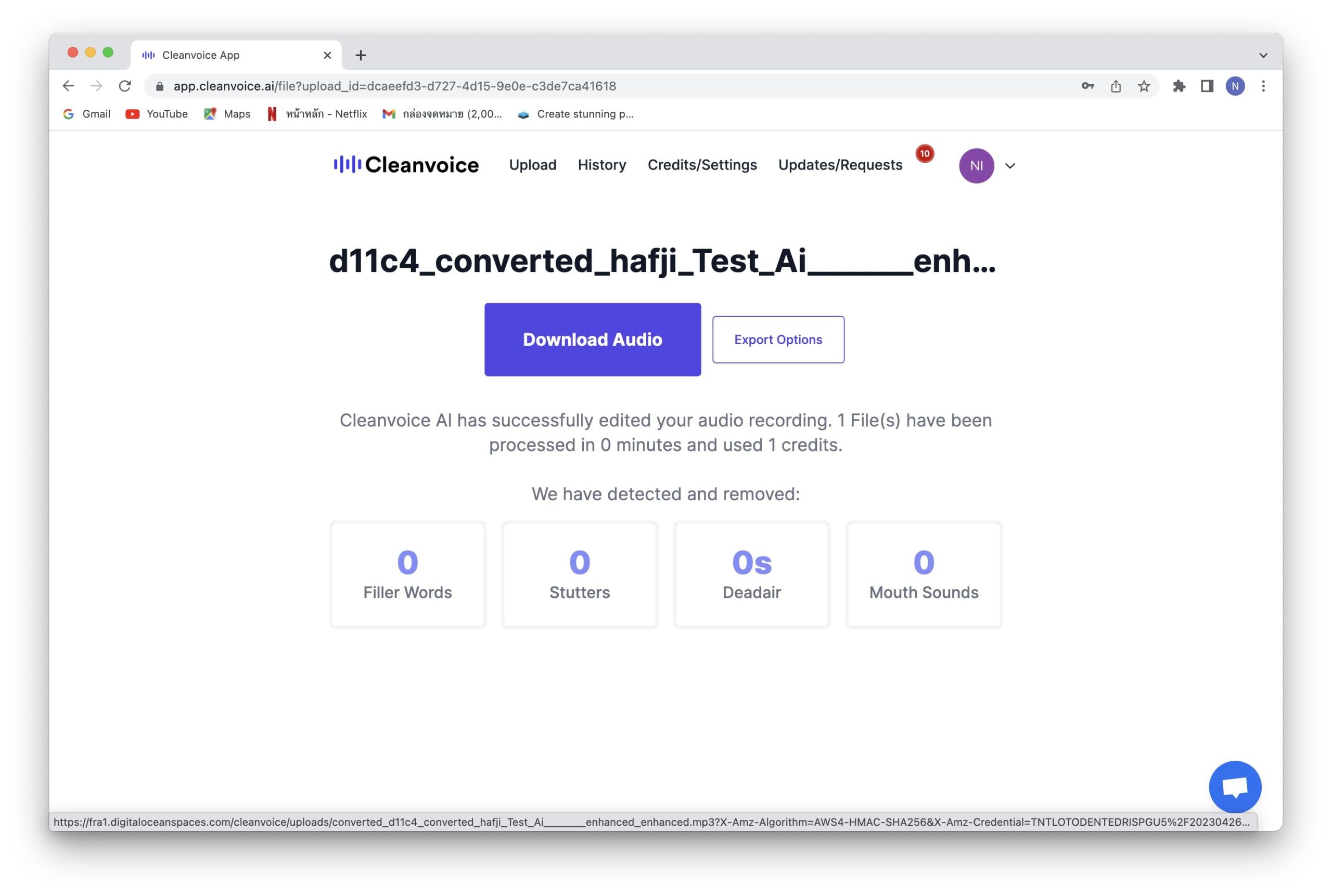 จากนั้นเราก็จะได้ไฟล์เสียงอันใหม่ที่ถูกตัดเสียงรบกวนออกไปแล้ว สามารถกด “Download Audio” ได้เลย