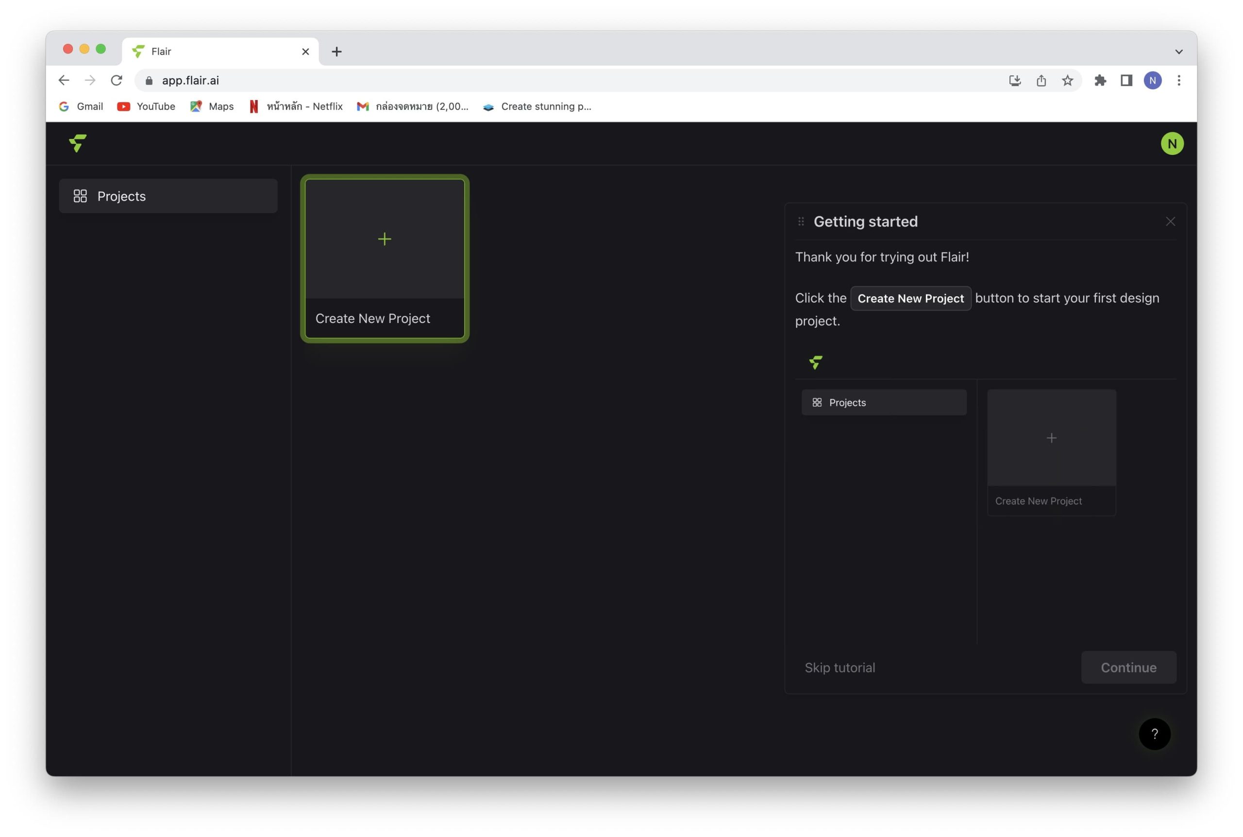 พอล็อกอินเสร็จก็จะมาเจอกับหน้านี้ กดสร้างโปรเจกต์ใหม่ได้เลย