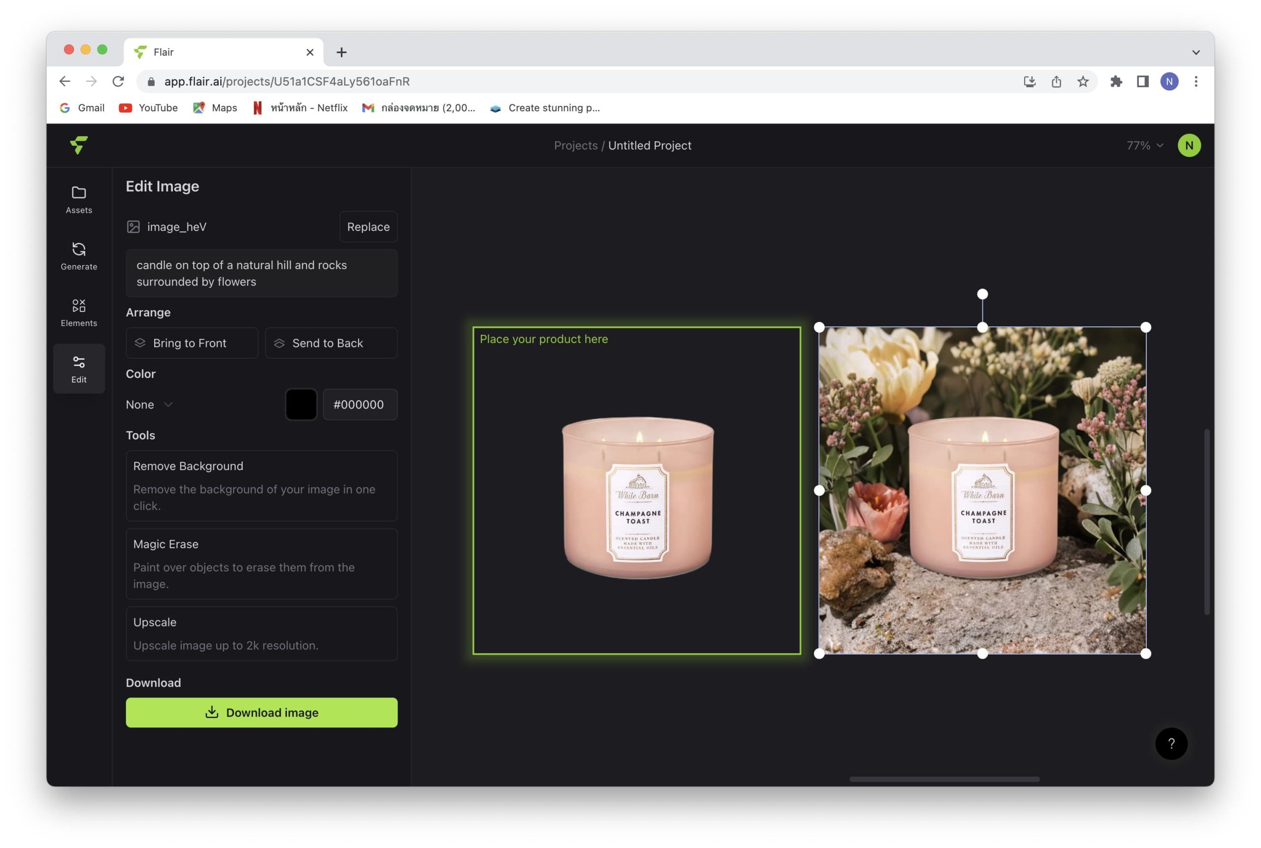 2.flair.ai : AI ทำกราฟิก เด่นเรื่อง Product shot