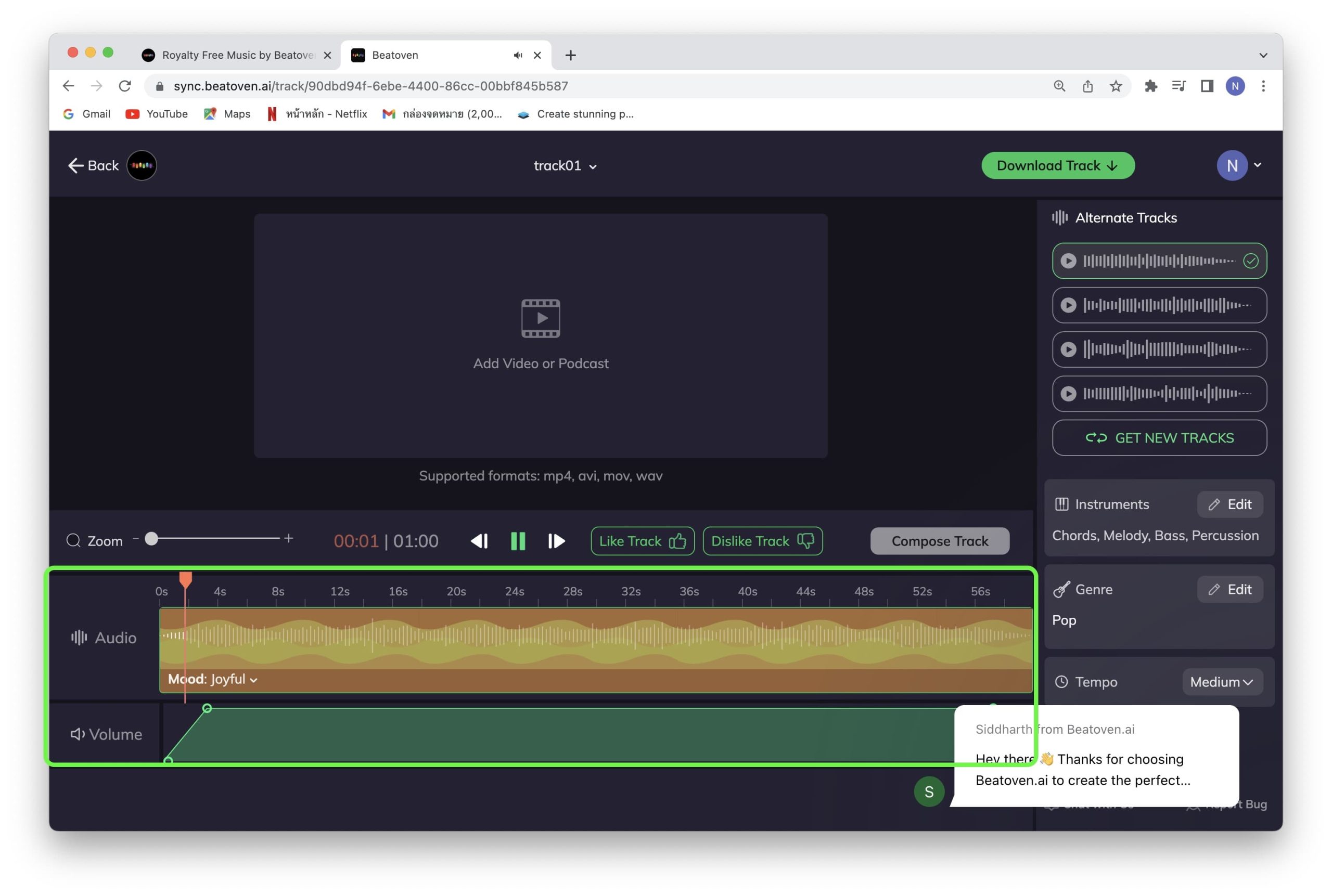 4.beatoven.ai : AI ออกแบบเสียงประกอบ ใช้เป็น Background music สำหรับวิดีโอได้