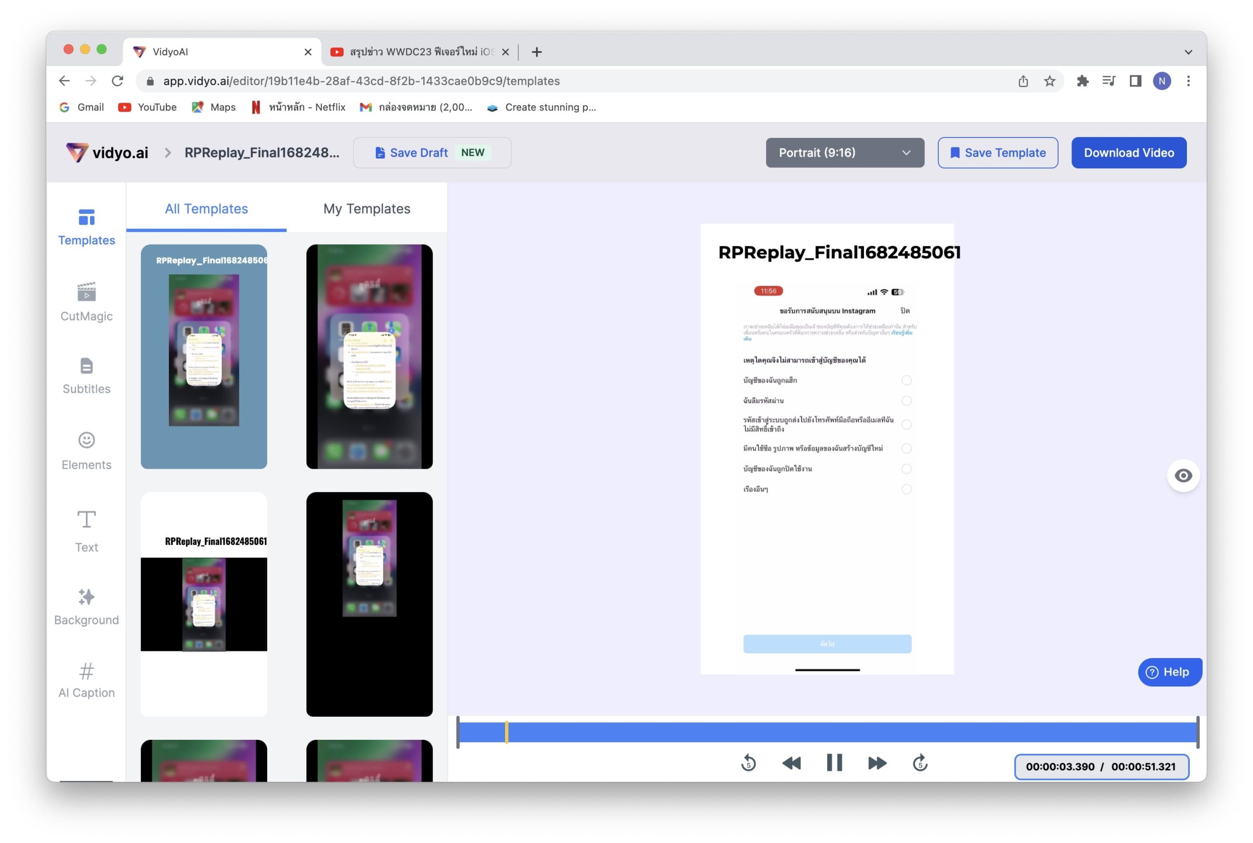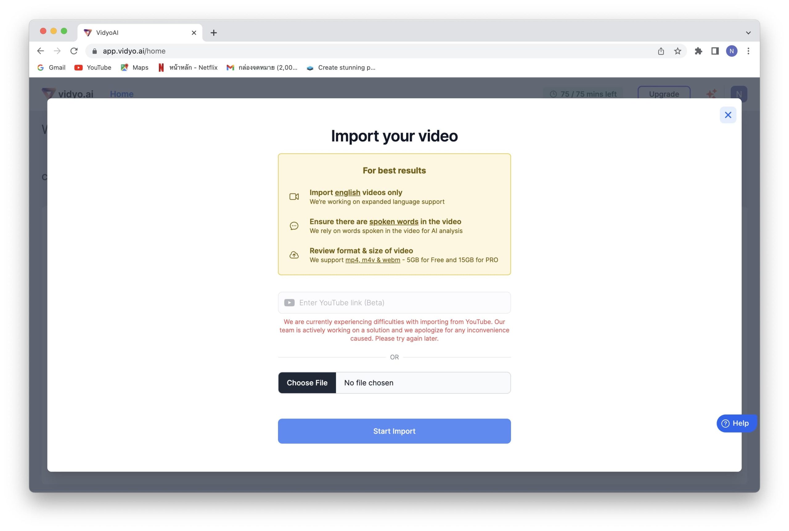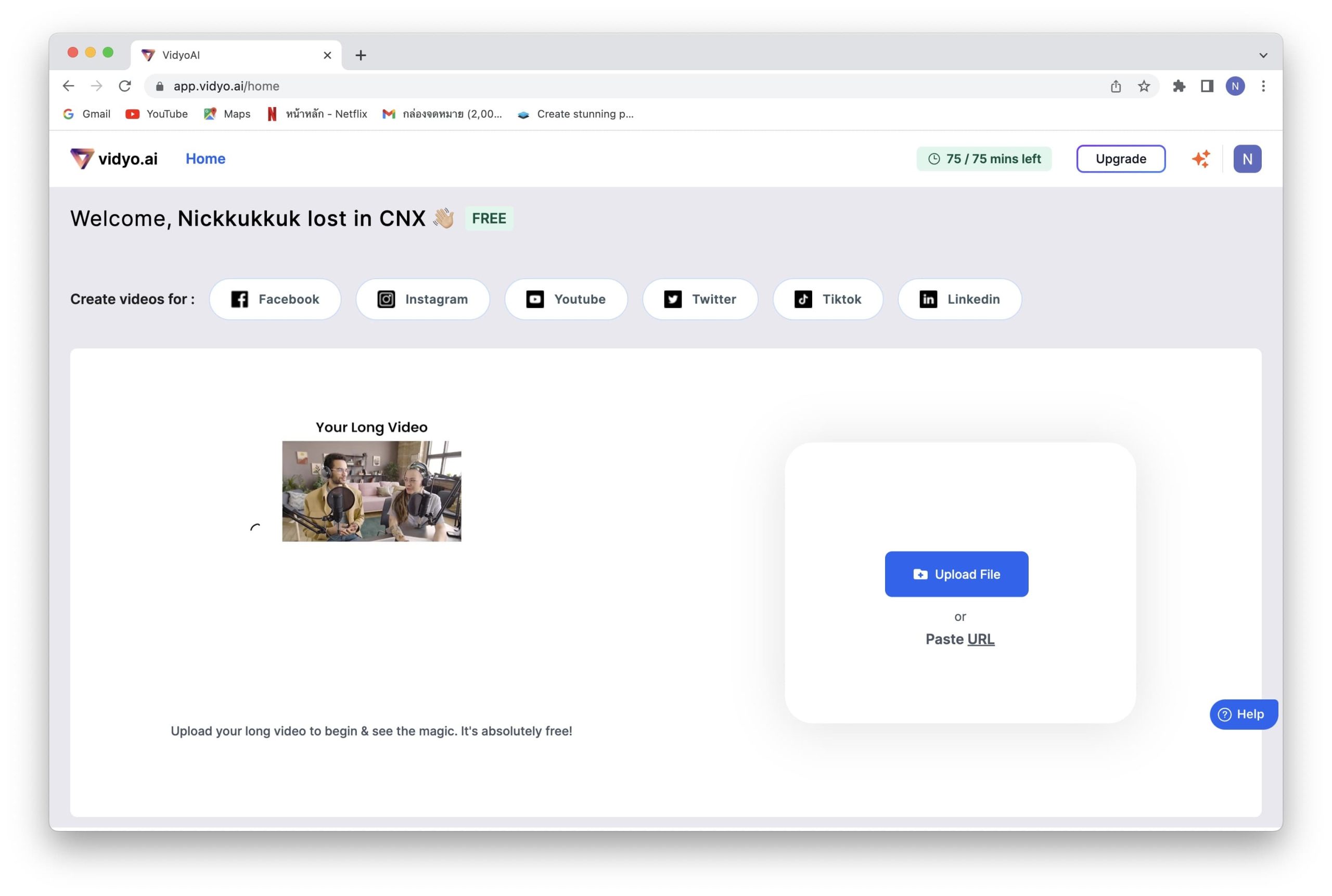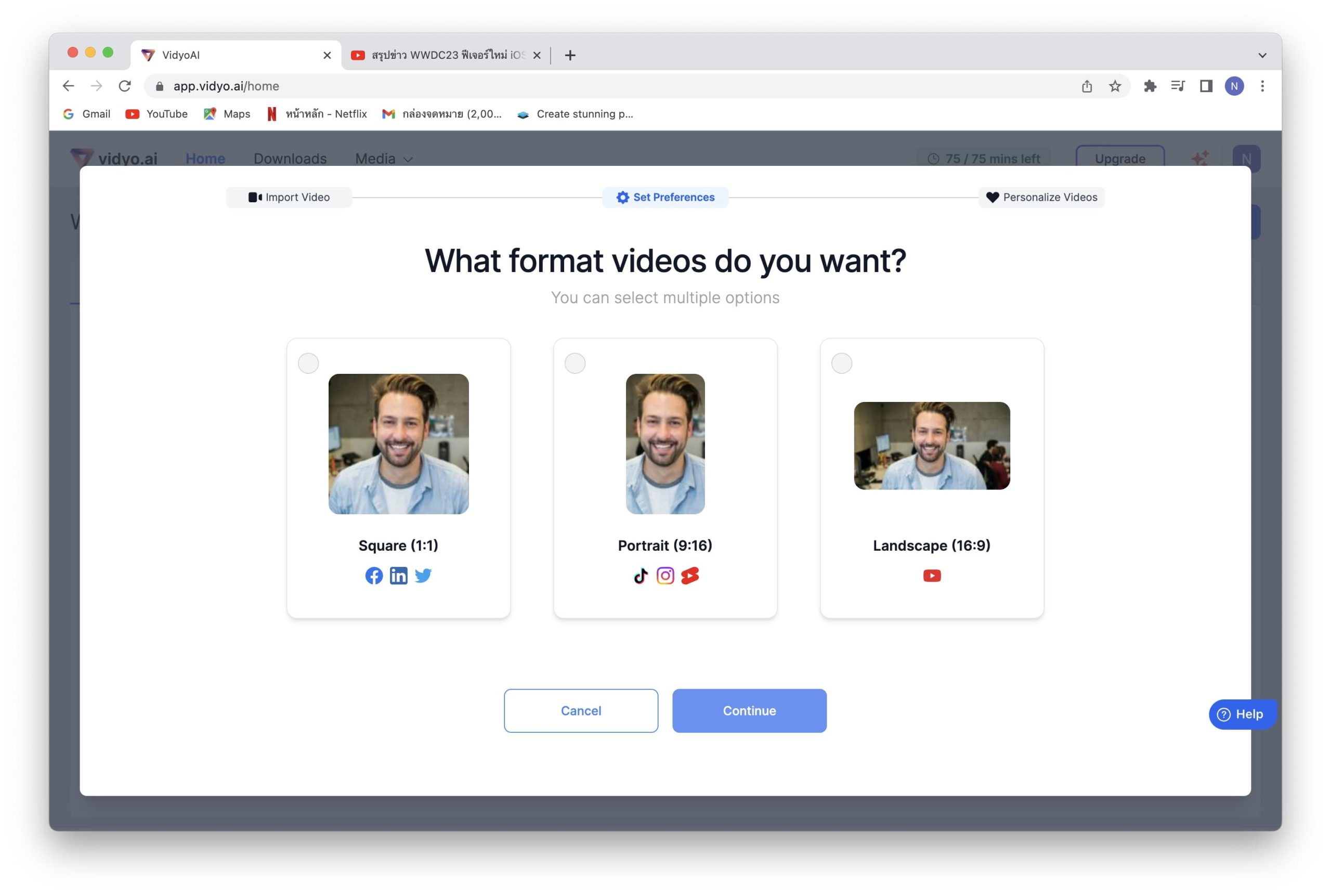 1.vidyo.ai : AI แปลงคลิปยาวเป็นคลิปสั้น เลือกขนาด ใส่เอฟเฟกต์ ใส่ซับไตเติ้ลได้
