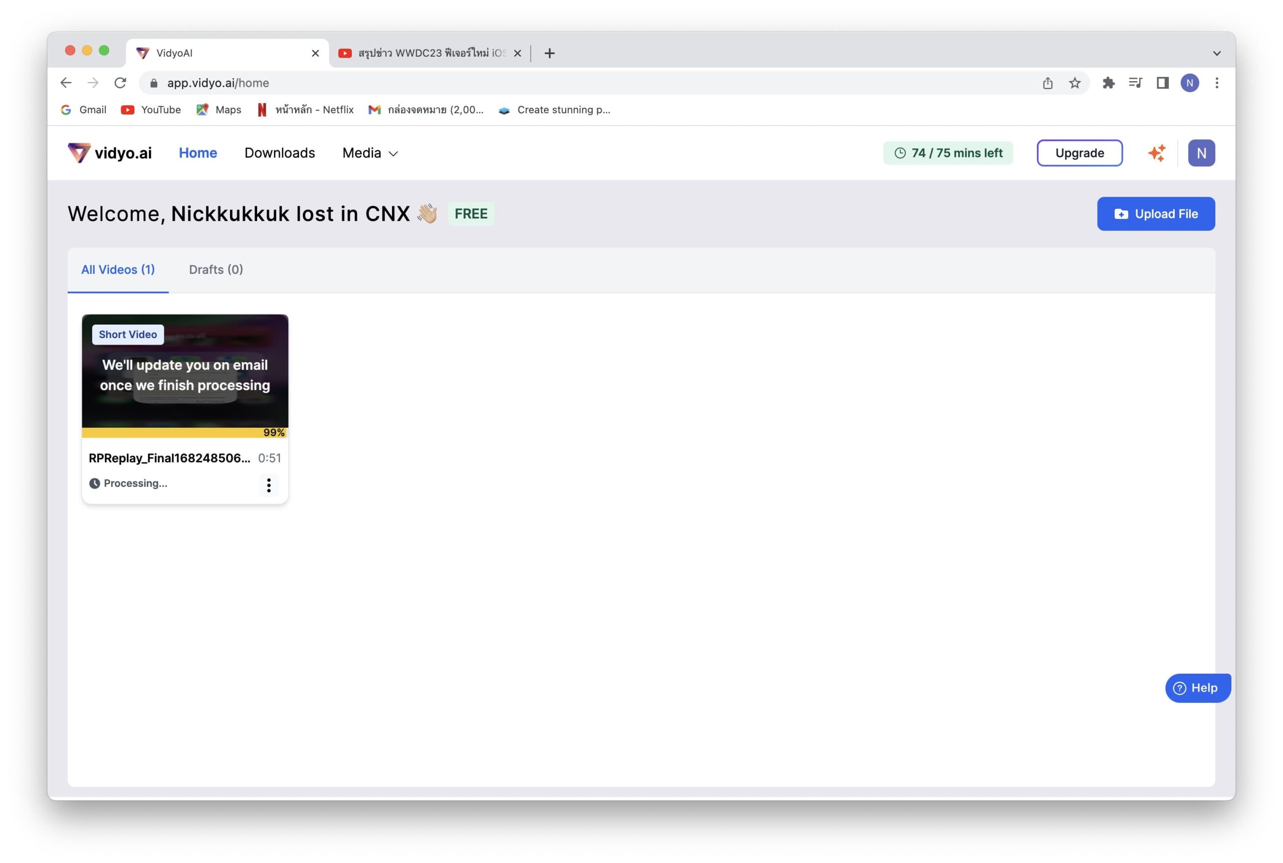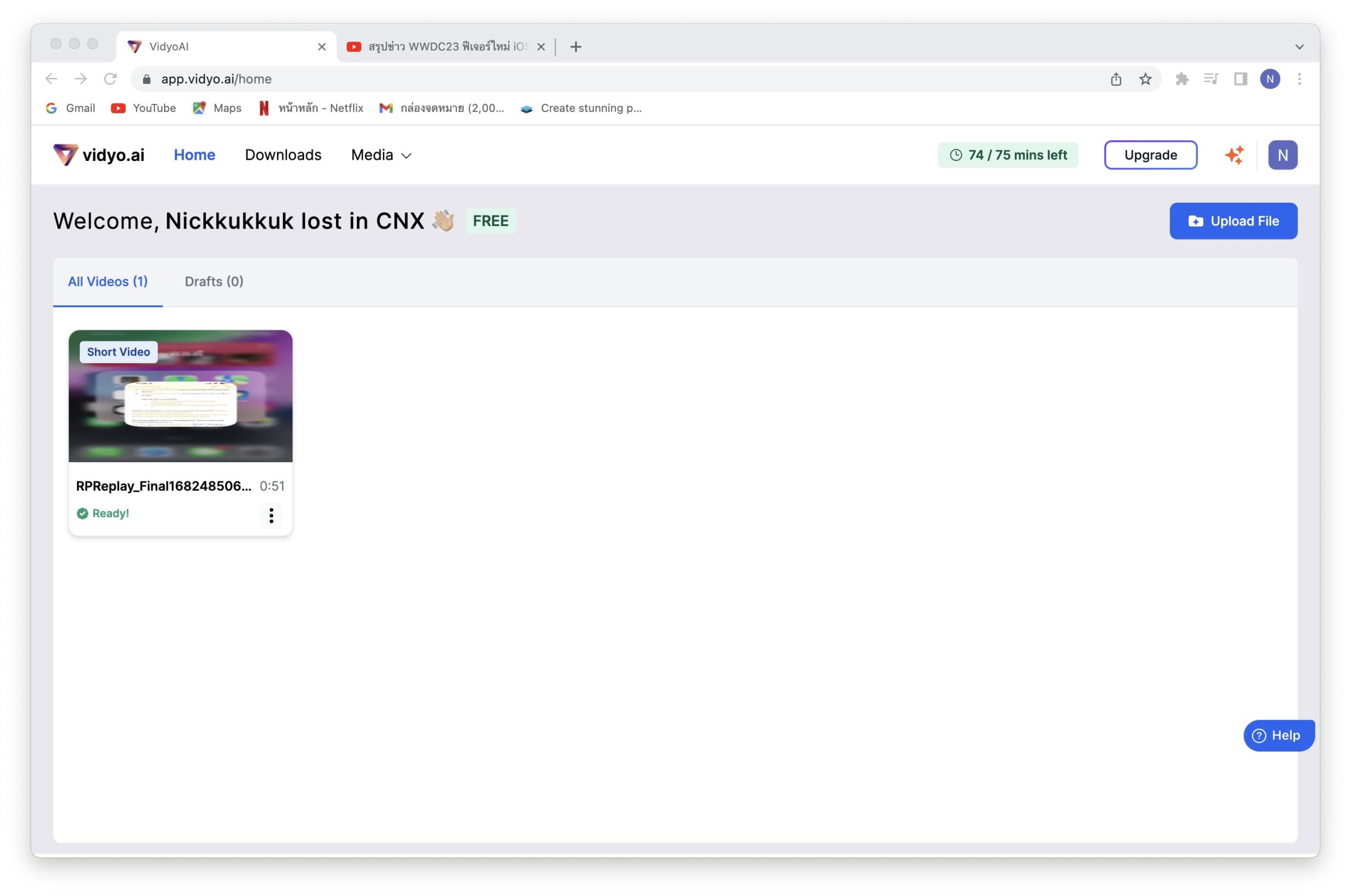 เมื่อเสร็จแล้วจะขึ้นสถานะ “Ready!” ให้กดเข้าไปตรวจดูและแก้ไขคลิปได้เลย