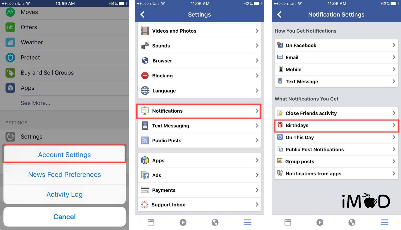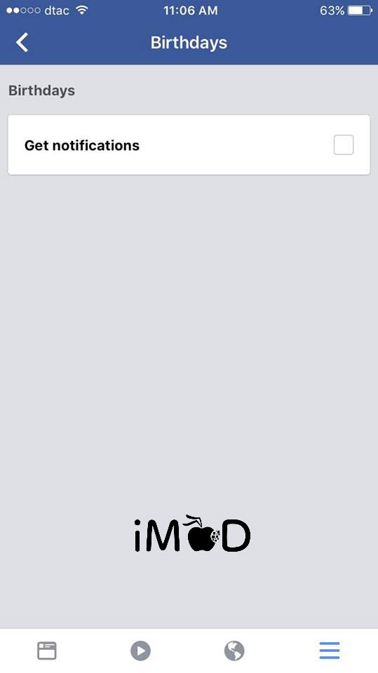ไปที่ Settings > Account Settings > Notifications > Birthdays