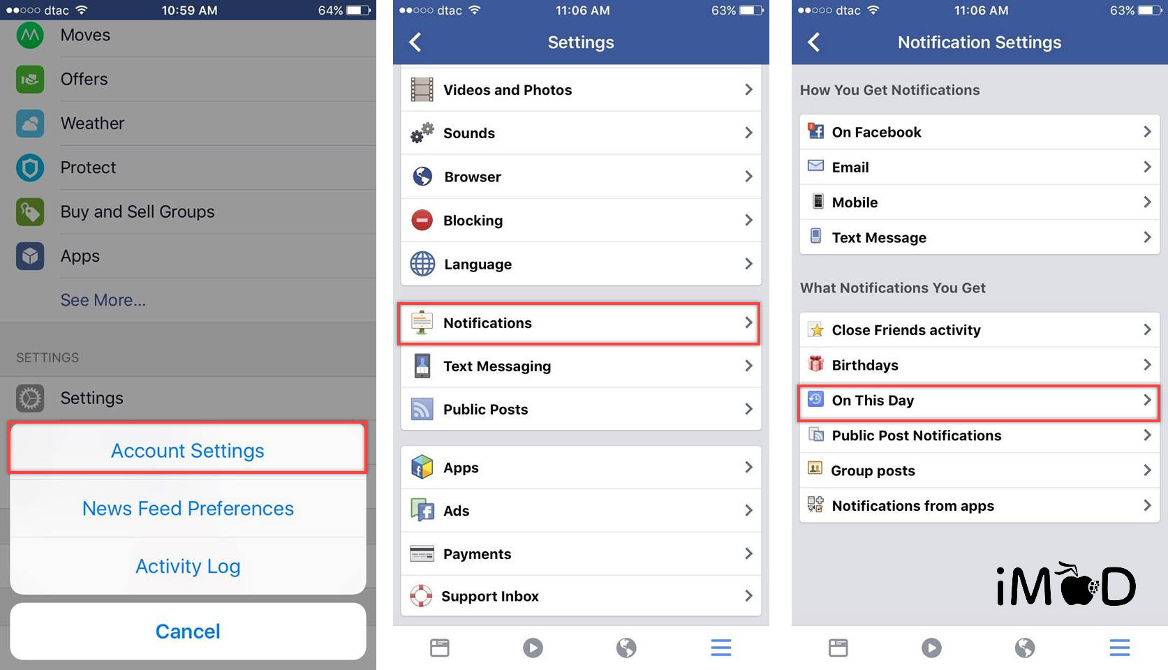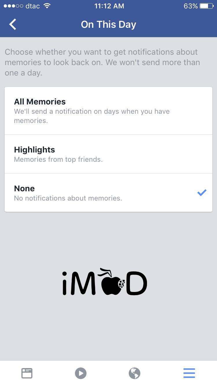 ไปที่ Settings > Account Settings > Notifications > On This Day