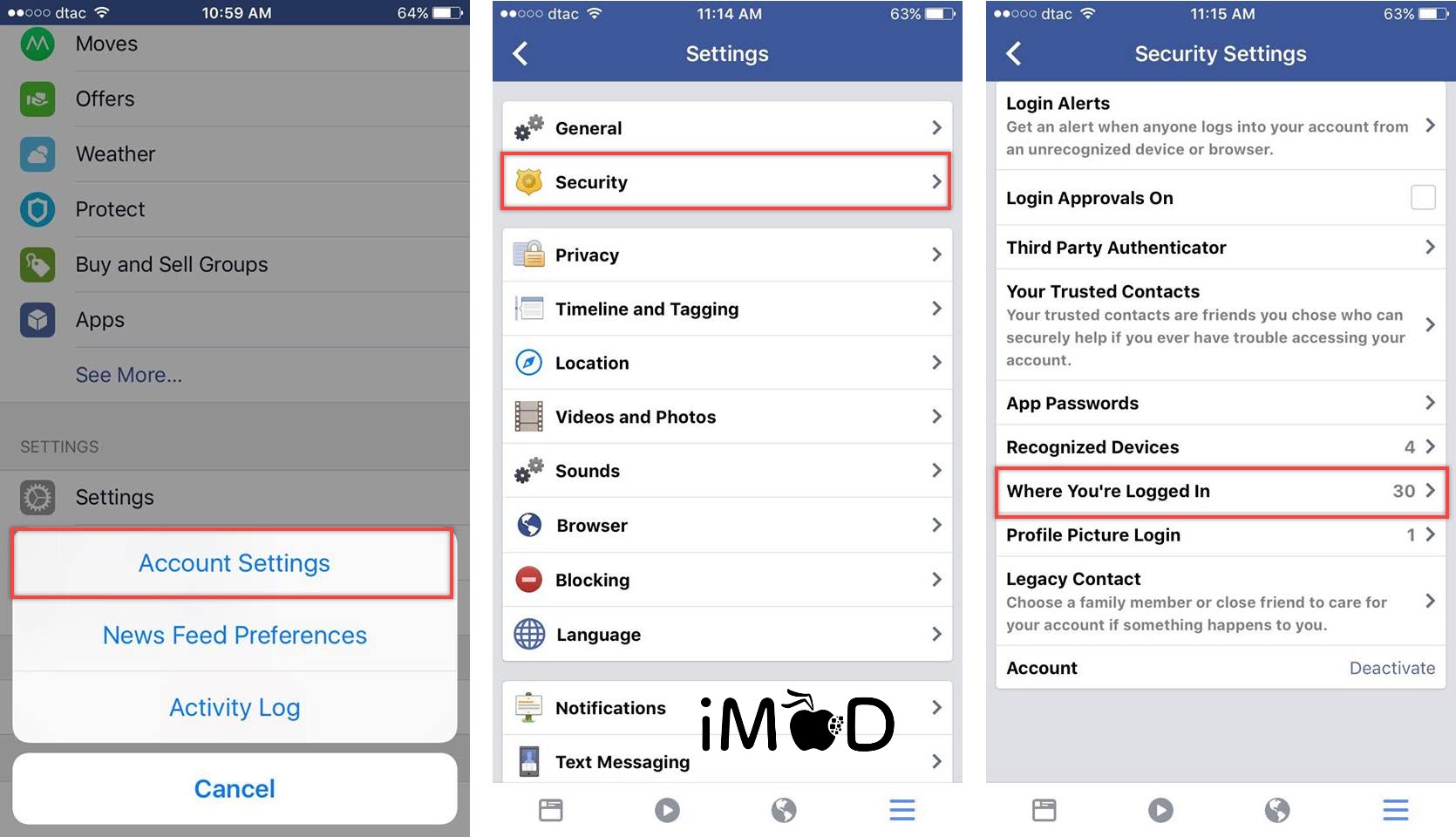 ไปที่ Settings > Account Settings > Security > Where You’re Logged In To