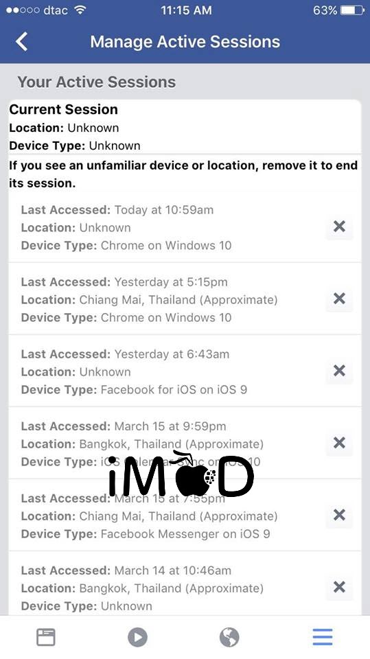เลือกดูรายการอุปกรณ์ที่ Log in ไว้อยู่ สามารถแตะปุ่ม “x” เพื่อ Log off รายการนั้น