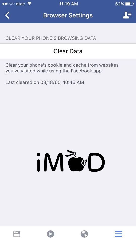 ส่วนใหญ่แล้วเรามักจะเปิดลิ้งก์เว็บไซต์ต่างๆผ่านแอป Facebook เลย เมื่อเราเปิดลิ้งก์เว็บไซต์บ่อยๆ ตัวแอป Facebook ก็จะจำค่าและข้อมูลเว็บไซต์ไว้ (Cookies และ Cache) เพื่อให้ครั้งต่อไปการเปิดเว็บไซต์จะเร็วขึ้น แต่ถ้านานๆไปเว็บไซต์เหล่านั้นอาจมีการเปลี่ยนแปลงข้อมูล ดังนั้นเราควรเคลียร์ Cookies และ Cache เพื่อล้างข้อมูลเก่าออกไปบ้าง ทำได้โดย