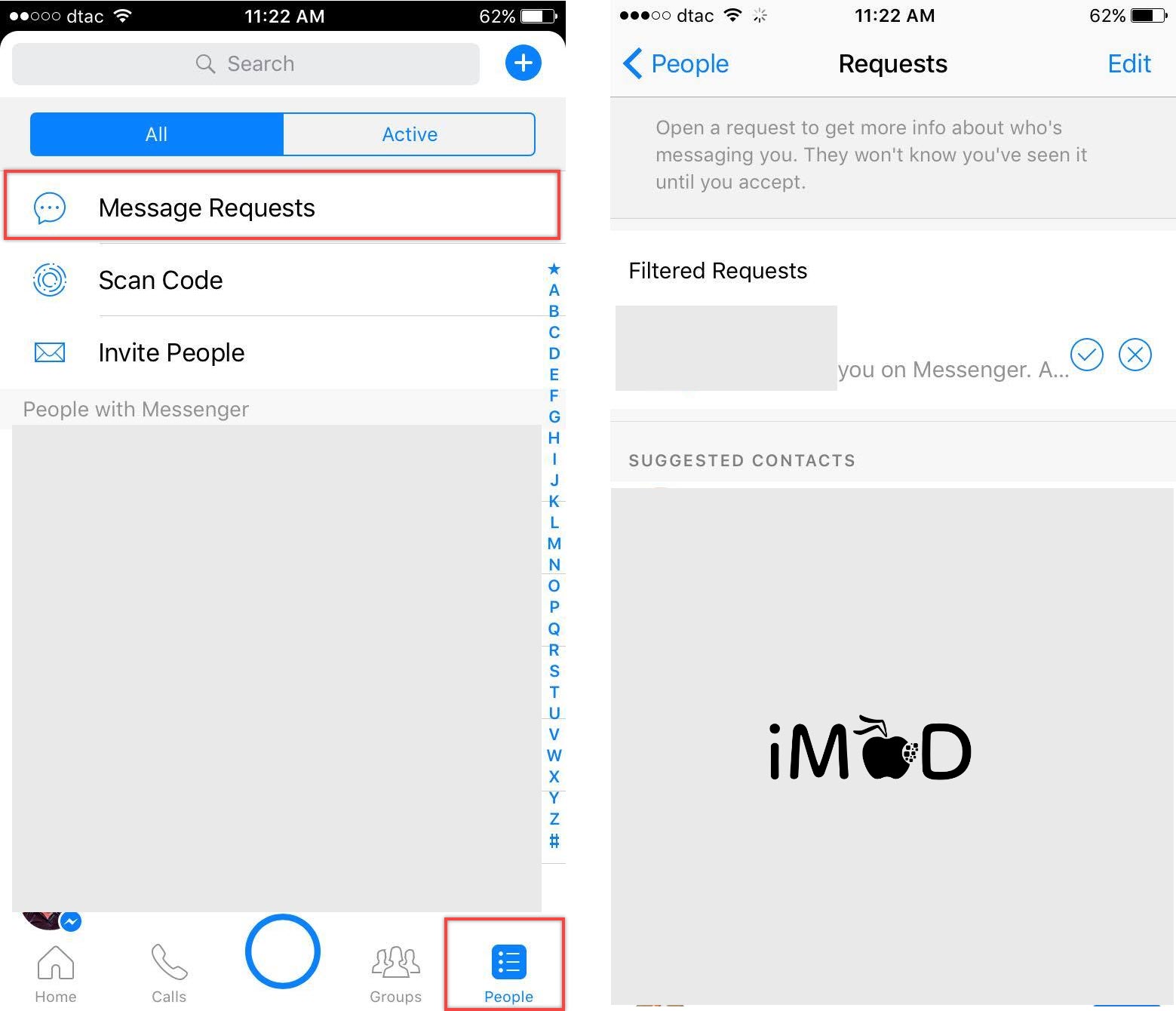 เปิดแอป Facebook Messenger > แท็ป People > Message Request