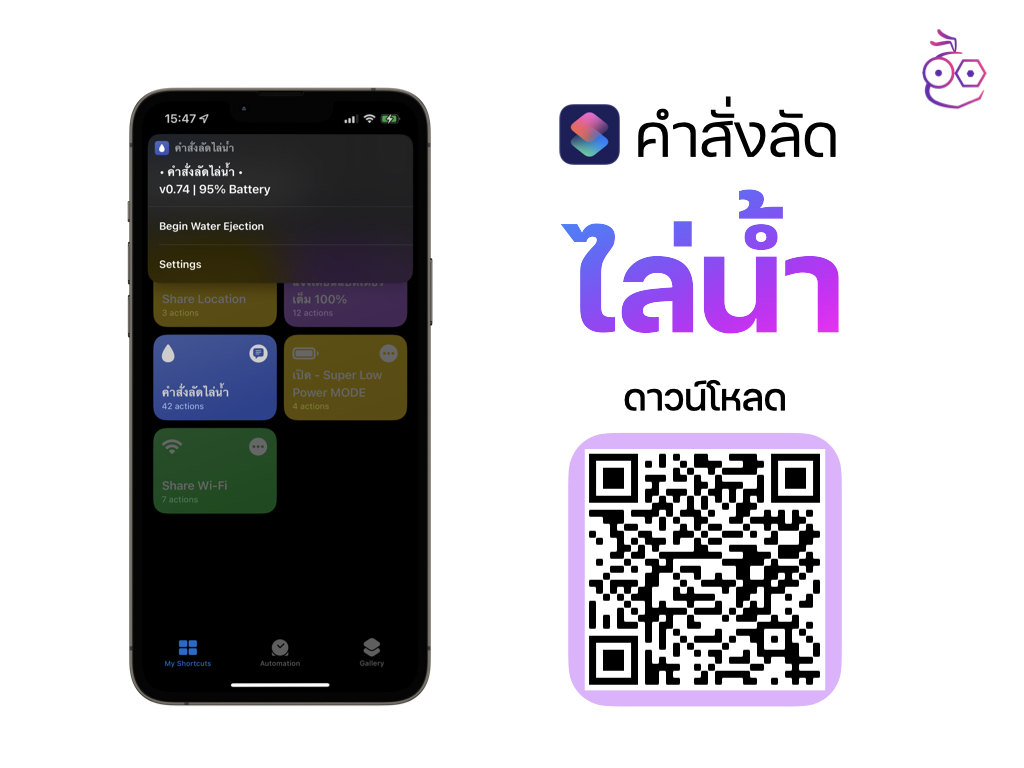 คำสั่งนี้จะช่วยส่งคลื่นเสียงไล่น้ำออกจาก iPhone ของคุณ เหมาะสมกับช่วงเทศกาลสงกรานต์นี้ที่หากคุณนำ iPhone ออกไปเที่ยว และเปียกกลับมา ก็สามารถใช้คำสั่งลัดนี้ช่วยไล่น้ำออกได้ในคลิกเดียว