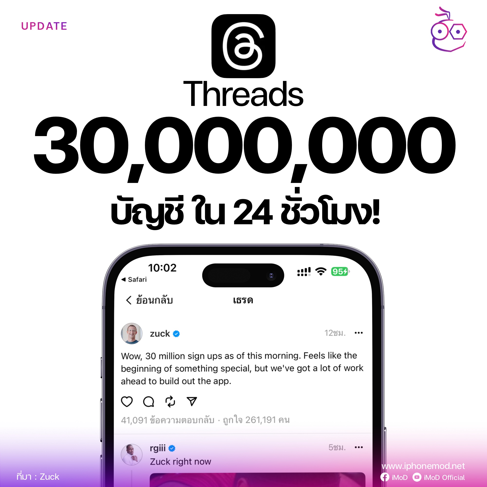 แอป Threads เปิดให้ใช้งานเป็นที่เรียบร้อยแล้ว พร้อมกับได้รับกระแสการตอบรับอย่างล้นหลาม เพราะหลังจากเปิดบริการไปใน 24 ชั่วโมงแรก ก็มีผู้ลงทะเบียนใช้งานไปกว่า 30 ล้านบัญชีแล้ว