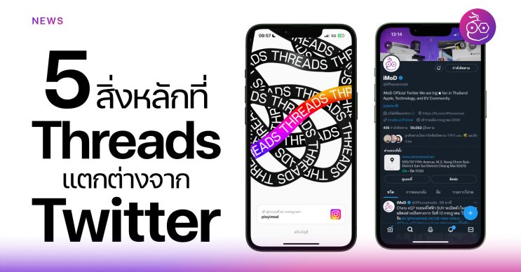 พาดู 5 สิ่งที่ แอป Threads แตกต่างจาก Twitter แม้ว่าการใช้งานจะมีลักษณะคล้ายกัน แต่ก็มีข้อแตกต่างกันอยู่หลายจุด จะมีอะไรบ้างมาดูกันเลย