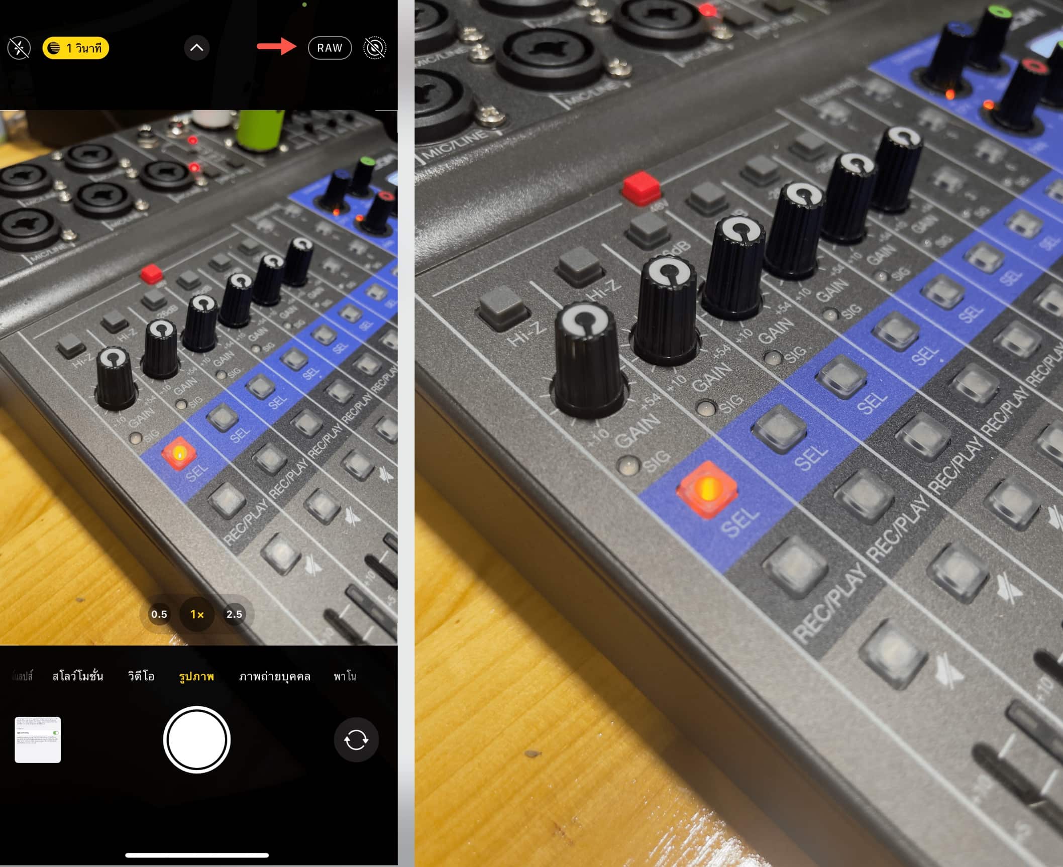 ตอนเปิดกล้องถ่ายภาพนั้นให้แตะไอคอน Apple ProRAW ที่บนขวาของหน้าจอด้วย