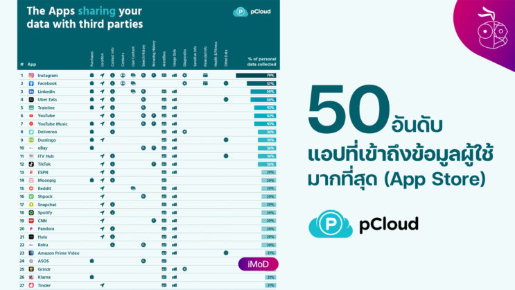 50 อันดับแอปใน App Store ที่เข้าถึงข้อมูลผู้ใช้มากที่สุด สำรวจโดย pCloud