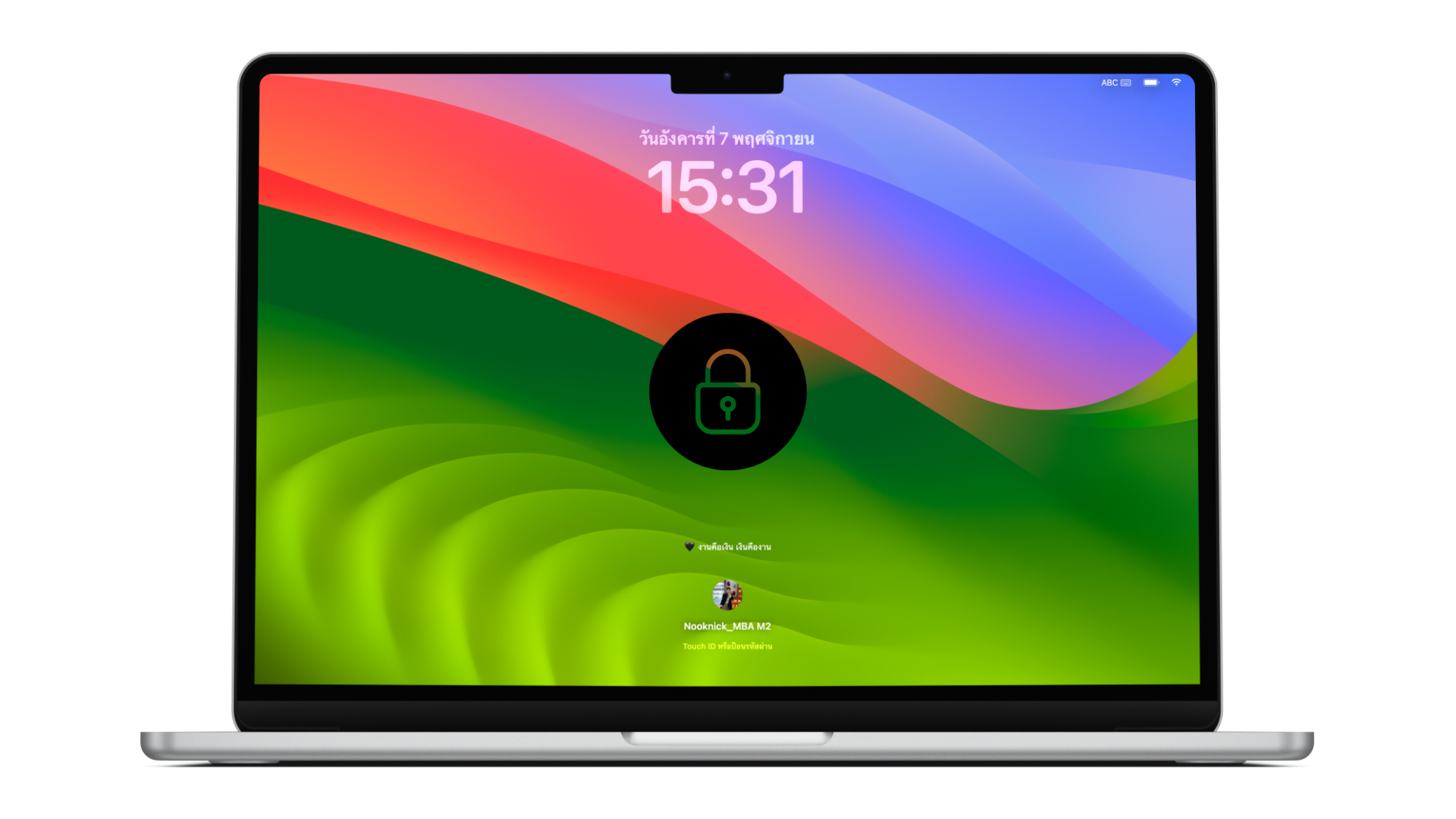 เวลาใช้งานก็เข้าไปที่ Control Center จากนั้นกดที่สัญลักษณ์รูปคน > กดที่ “หน้าต่างเข้าสู่ระบบ” พอกดไปก็จะเป็นการล็อคหน้าจอ