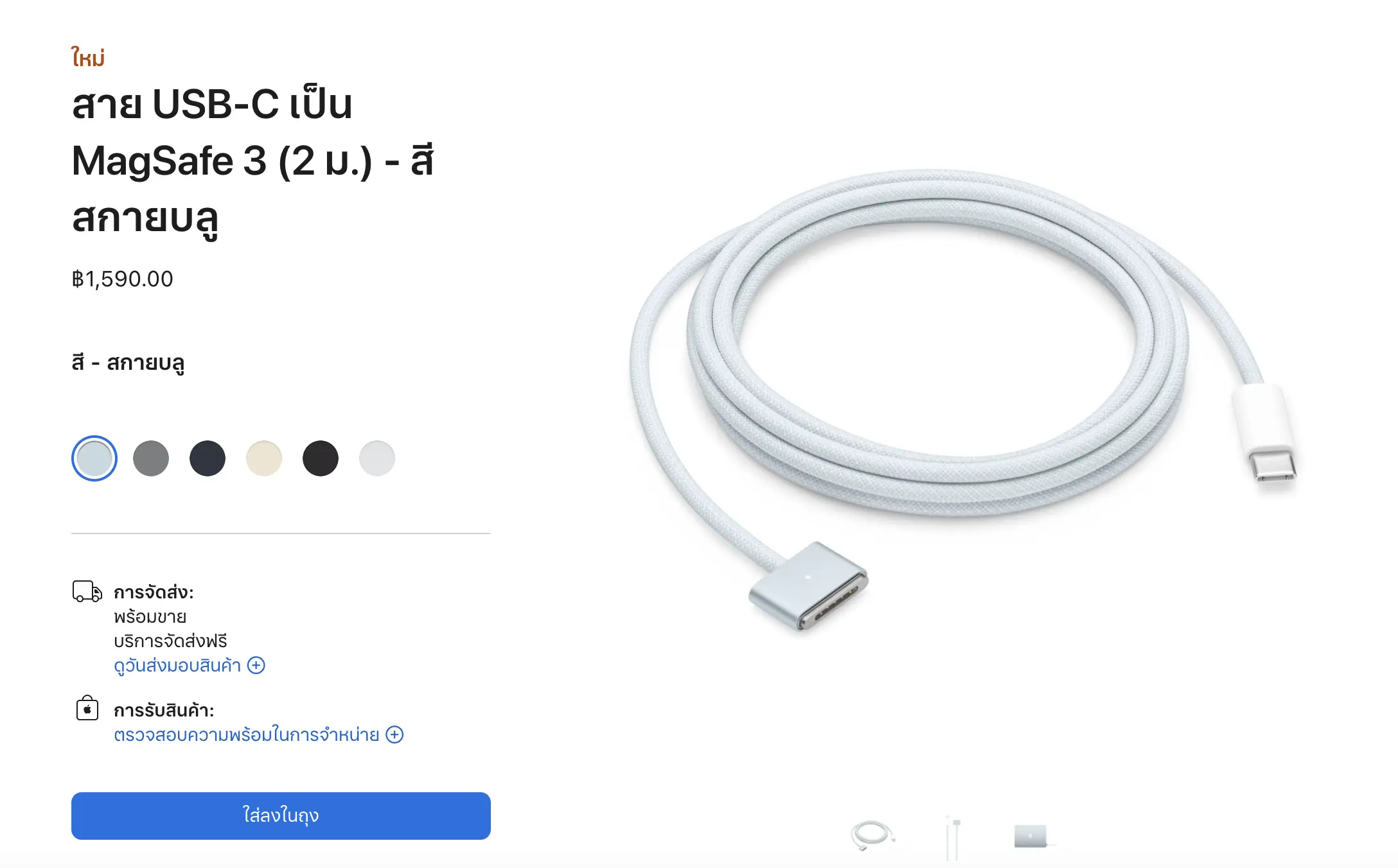 สำหรับใครต้องการสาย MagSafe สีอื่น สามารถซื้อเพิ่มได้ในราคา 1,590 บาท ที่ Apple Store