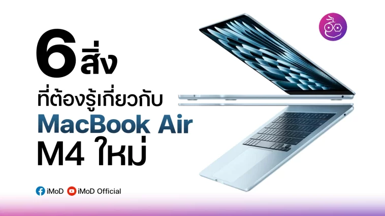 Apple เปิดตัว MacBook Air ใหม่มาพร้อมชิป M4 เมื่อวันที่ 5 มีนาคมที่ผ่านมา โดยยังคงดีไซน์บางเบาตามเอกลักษณ์ของตระกูล Air จุดเด่นของ MacBook Air รุ่นใหม่นี้มีหลายอย่างที่น่าสนใจ เรามาชม 6 สิ่งที่ควรรู้เกี่ยวกับ MacBook Air รุ่นล่าสุดนี้กัน