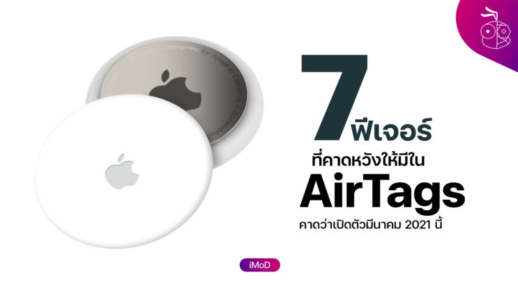 AirTags เป็นอุปกรณ์เสริมสำหรับติดตามตำแหน่งของสิ่งของ ซึ่งมีข่าวลือว่าจะเปิดตัวมานานแล้ว ข่าวลือล่าสุดระบุว่าเราอาจจะได้เห็นการเปิดตัว AirTags ในช่วงเดือนมีนาคม 2021 นี้ เรามาชมกันก่อนว่าฟีเจอร์ที่หลาย ๆ คาดหวังอยากจะให้มีใน AirTags นั้นมีอะไรบ้าง