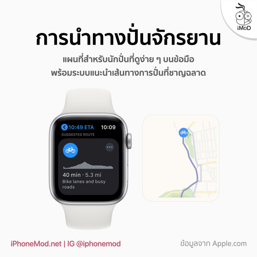 แอปแผนที่ (Maps) ถูกอัปเดตเส้นทางการขี่จักรยานที่ดูได้ง่าย ๆ บนข้อมือ นักปั่นจักรยานสามารถขี่จักรยานไปด้วยดูแผนที่การเดนิทางไปด้วยอย่างสะดวกสบาย มองเห็นเส้นทางชัดเจน มีการแจ้งแนะนำให้ทราบว่าควรจูงจักรยานเดินหรือใช้บันไดเพื่อประหยัดเวลา และผู้ใช้สามารถเลือกเส้นทางเพื่อหลีกลี่ยงทางเนินสูงชัด เลือกระยะทางสั้น ๆ หรือใช้ทางที่ตรงที่สุดก็ได้