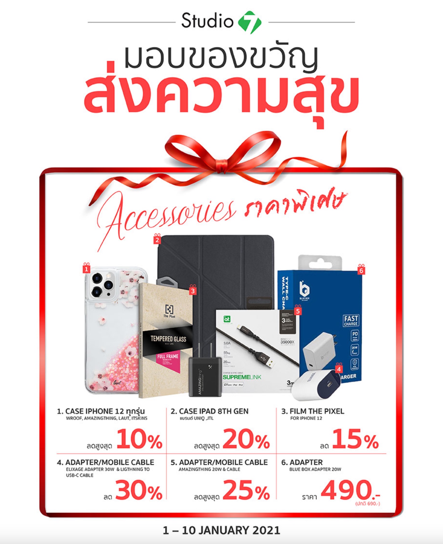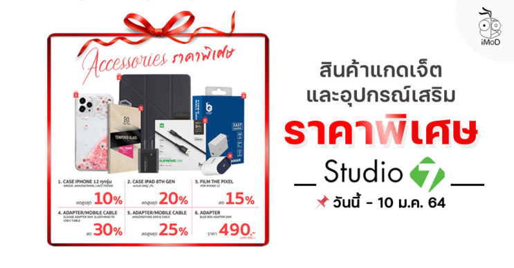 Studio 7 จัดโปรโมชันมอลของขวัญให้ลูกค้ากับ สินค้าแกดเจ็ตและอุปกรณ์เสริม ลดสูงสุด 60% วันนี้ – 10 ม.ค. 64 ที่สาขาใกล้บ้าน
