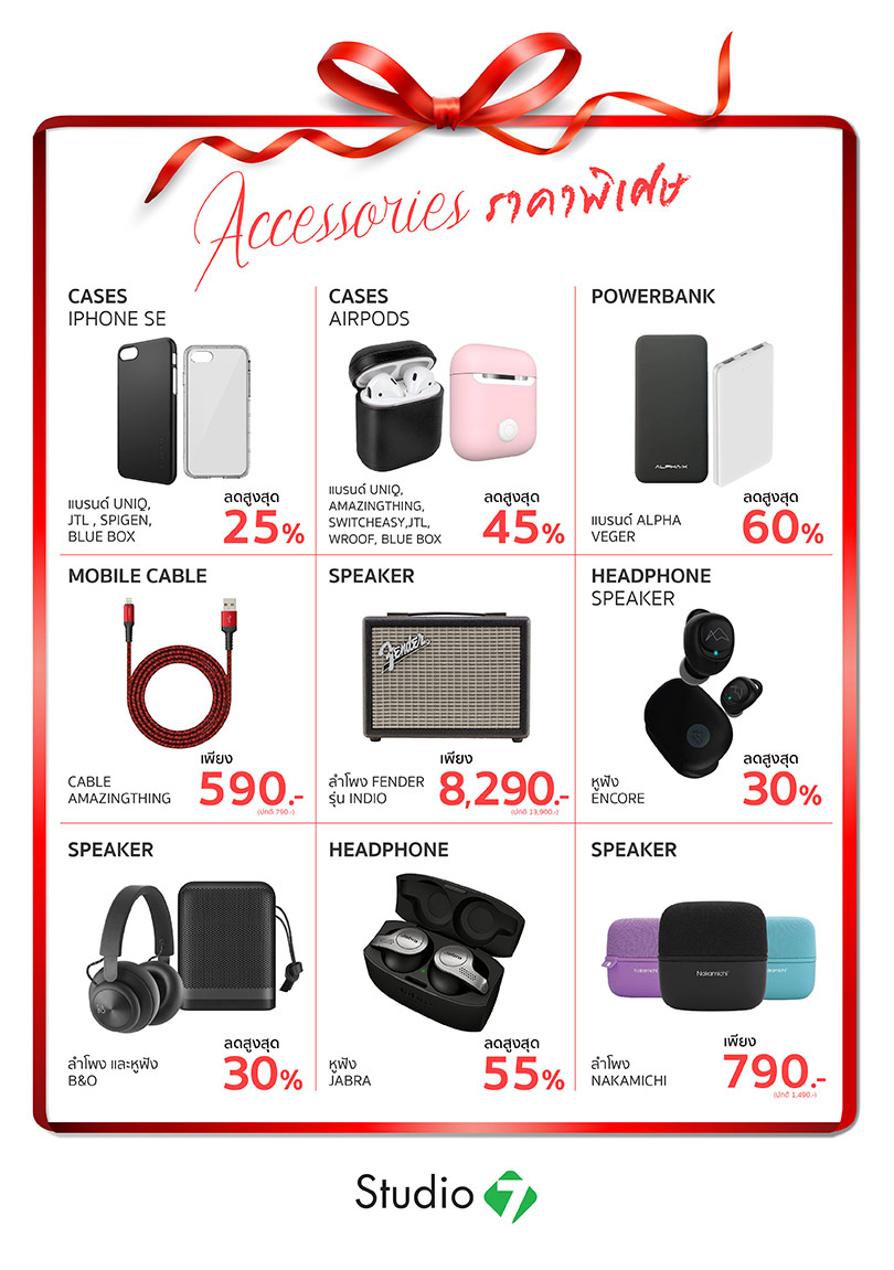 สำหรับ สินค้าแกดเจ็ตและอุปกรณ์เสริมลดที่ Studio 7 มีดังนี้
