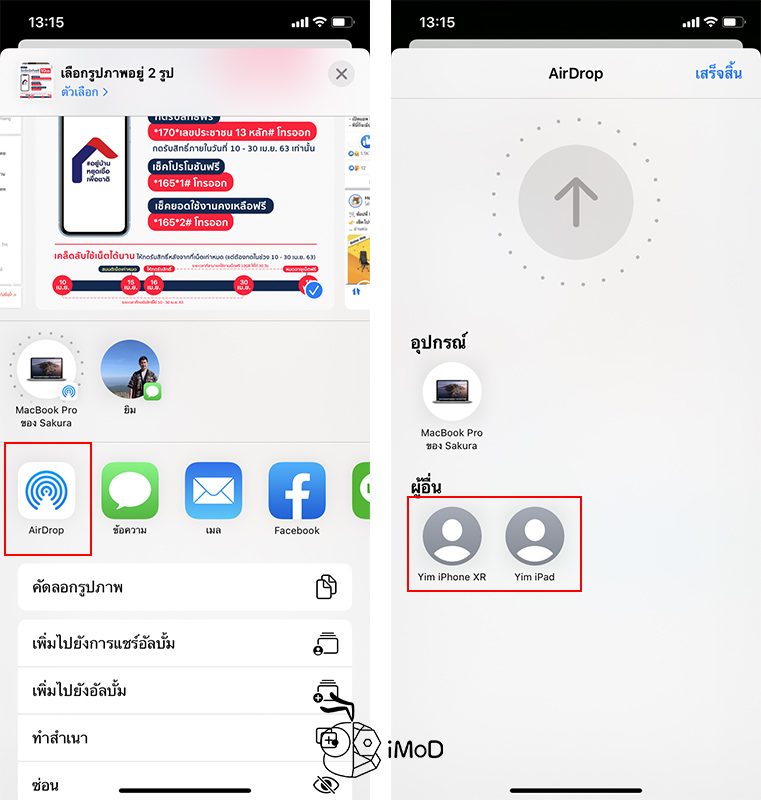 เพียงแค่เปิดการส่ง AirDrop ขึ้นมา แล้วหันโทรศัพท์ โดยให้ลูกศรชี้ไปทางอุปกรณ์ Apple เครื่องอื่น รายชื่ออุปกรณ์เหล่านั้นก็จะปรากฏขึ้นมาให้เราส่ง AirDrop ทันที อยากส่งให้ใครก็หัน iPhone, iPad ไปทางนั้นแล้วแตะส่งได้เลย