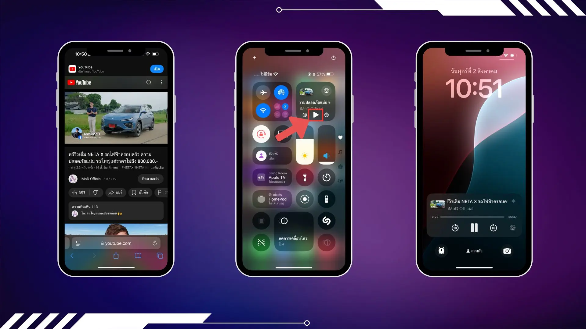 3. เปิด ศูนย์ควบคุม และแตะปุ่ม เล่น สิ่งนี้จะบังคับให้วิดีโอ YouTube เล่นต่อไปในโหมดเสียงเท่านั้น คุณยังสามารถล็อคหน้าจอได้อีกด้วย