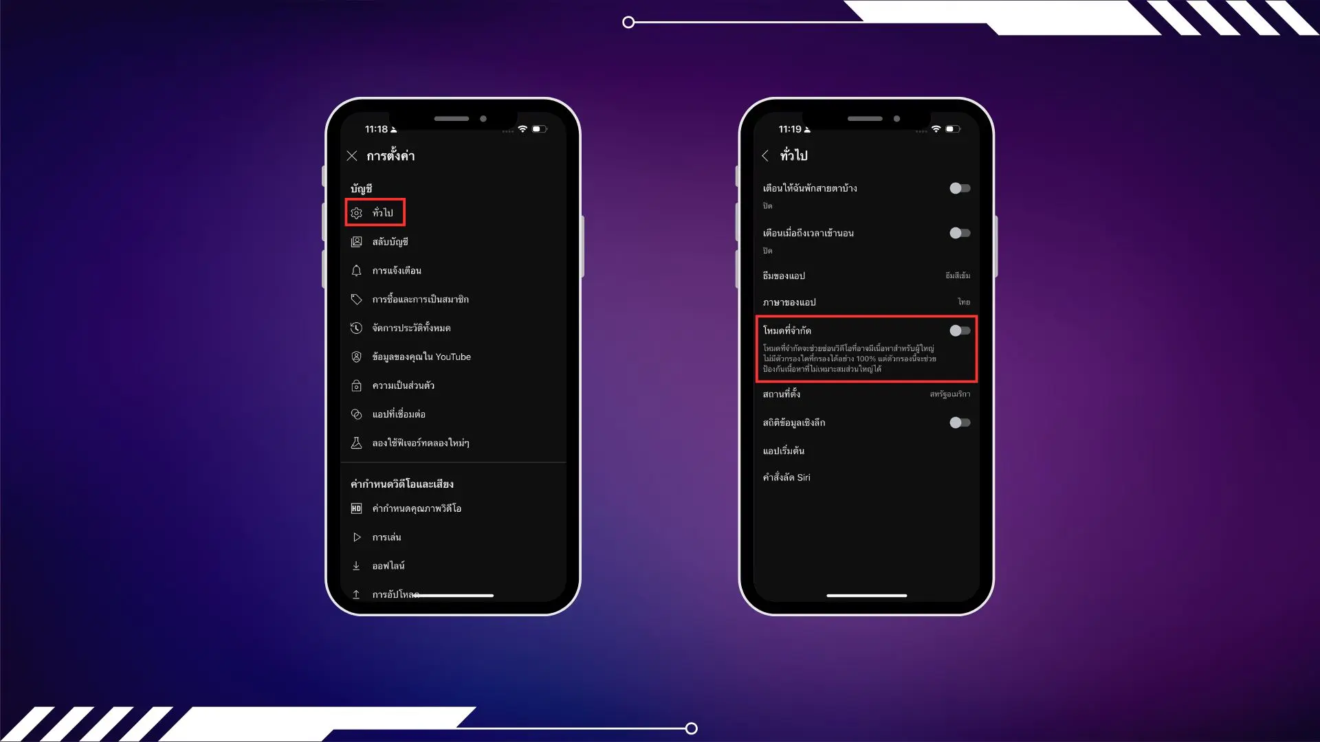 หากคุณไม่ต้องการเห็นการแนะนําวิดีโอที่ไม่เหมาะสมสำหรับเด็กทั้งในด้านความรุนแรงหรือคำพูด ให้ไปที่การตั้งค่าทั่วไปของ YouTube และเปิดโหมดที่จํากัด