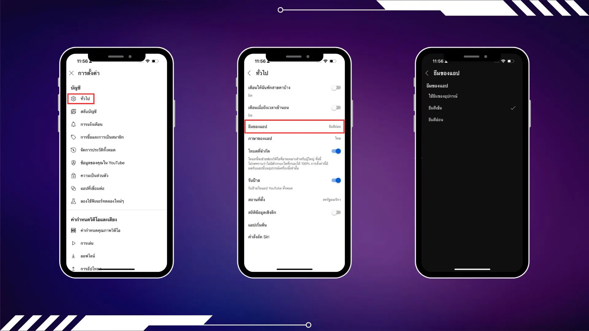 บางครั้งธีมสีขาวอาจให้ความรู้สึกที่สว่างหรือแสบตามากเกินไปก็สามารถปรับเป็นโทนที่เข้มขึ้นได้ เข้าไปที่การตั้งค่า>ทั่วไป>ธีมของแอป หลังจากนั้นเลือกธีมที่เราต้องการได้เลย