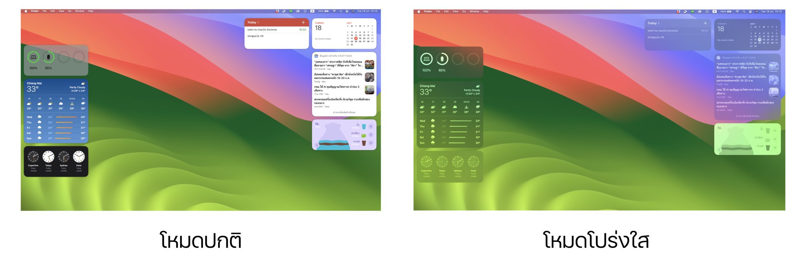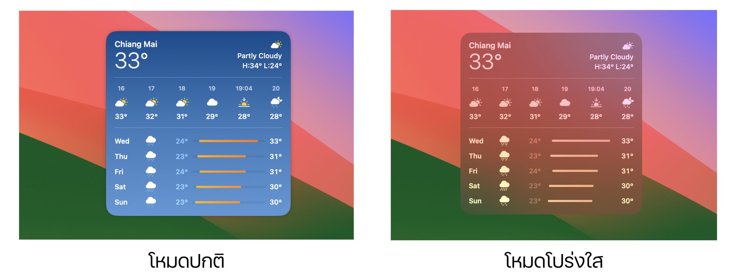เช่นเดียวกันกับแอป “สภาพอากาศ” ที่เพิ่มเข้ามาให้กับ macOS Ventura เป็นแอปมาตรฐานที่เราสามารถเรียกใช้งาน Widgets ใน macOS Sonoma ได้