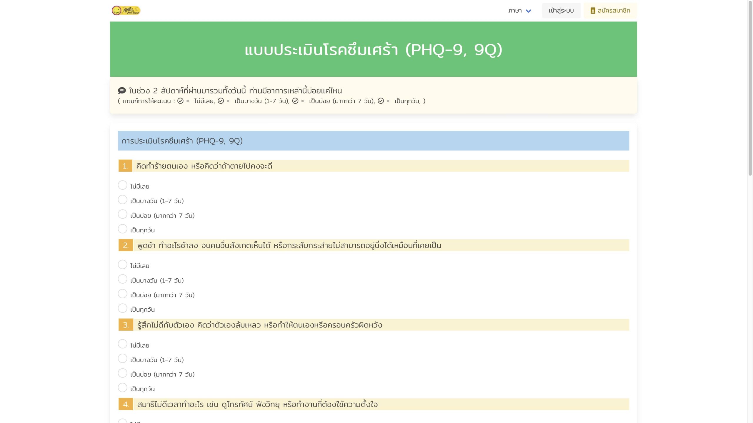 เว็บนี้จะเอาไว้ประเมินโรคซึมเศร้าว่าเราเราเป็นภาวะซึมเศร้าระดับไหน