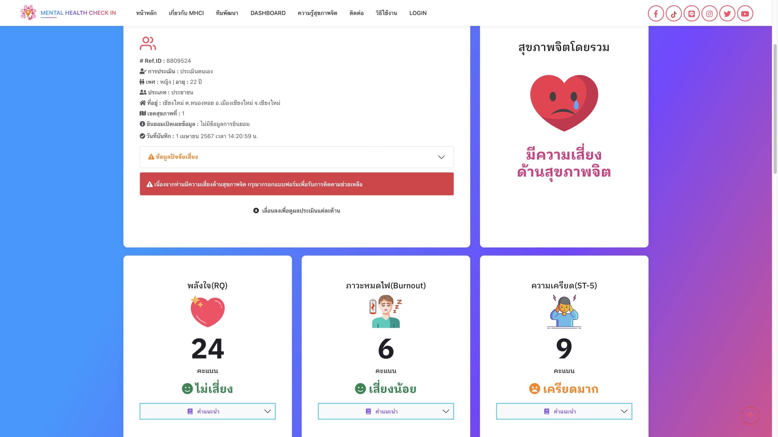 เว็บนี้เป็นเว็บที่คำถามจะค่อนข้างเยอะหน่อย เพราะตัวเว็บจะประเมินทั้งความเครียด ภาวะหมดไฟ และอื่น ๆ
