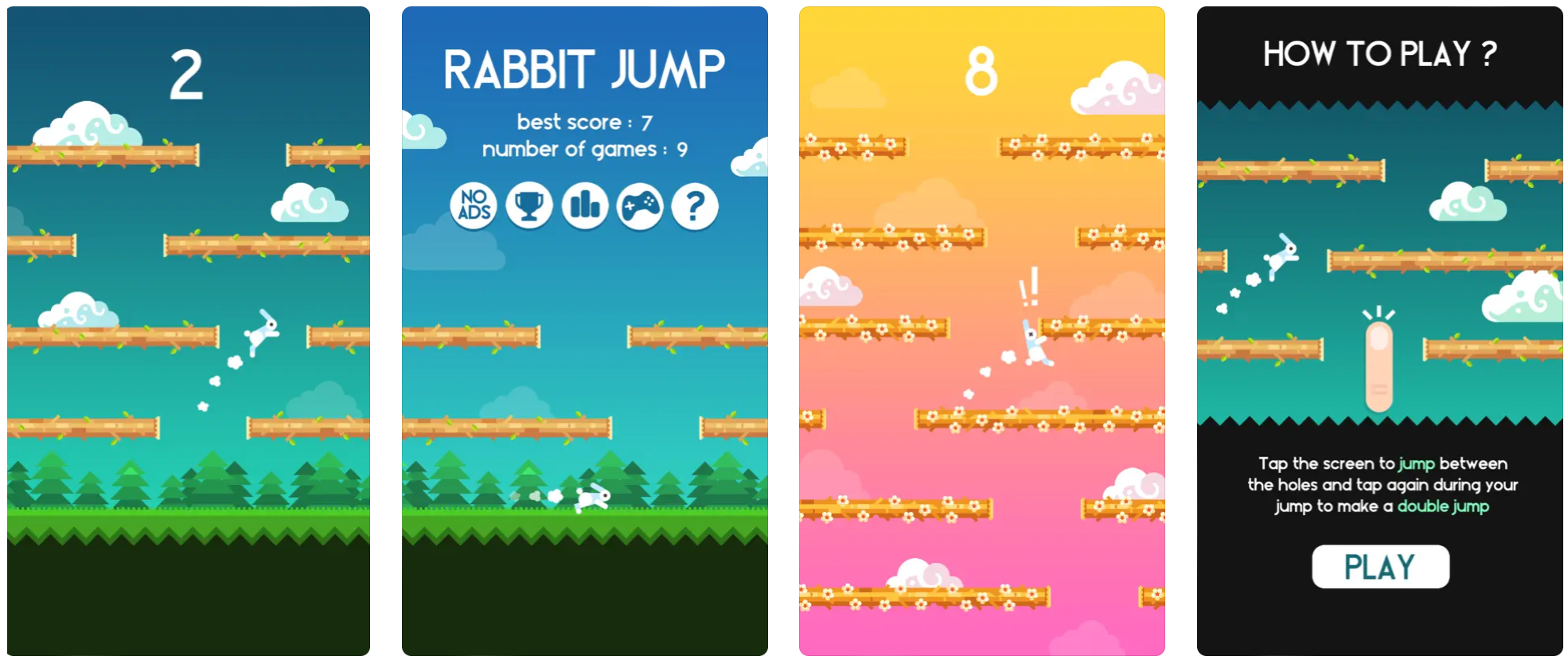 เกมแคชชวลเล่นง่าย เพียงแค่แตะนิ้วลงบนหน้าจอเพื่อควบคุมน้องกระต่ายให้กระโดดผ่านช่องว่างต่าง ๆ โดยไม่ชนเข้ากับต้นไม้ หรือกิ่งไม้ เป็นแอปพลิเคชันที่ใช้ฆ่าเวลาได้เป็นอย่างดี ด้วยรูปแบบการเล่นที่เข้าใจง่าย และภาพ 2D ที่ดูแล้วสบายตา